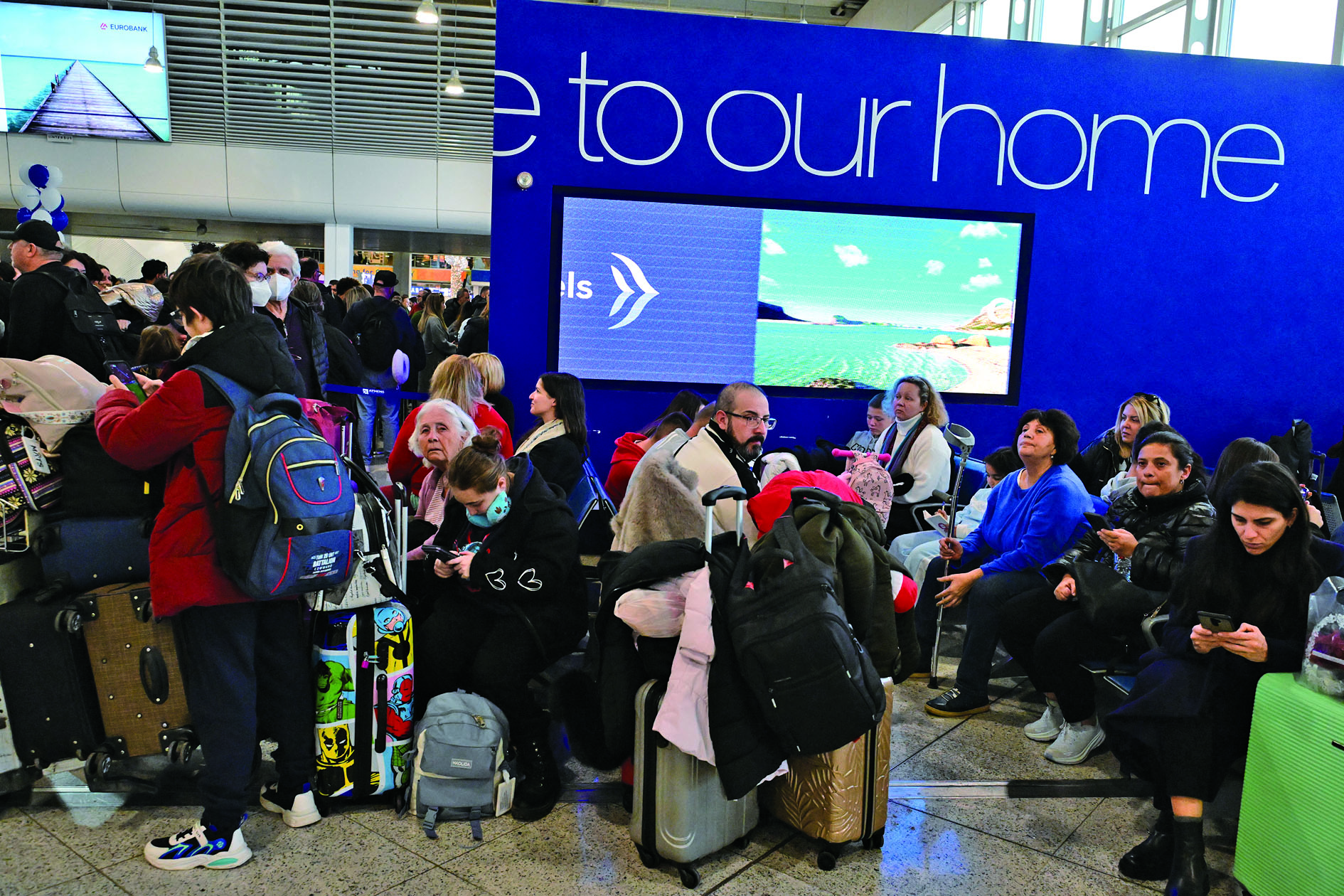 1月4日,旅客滞留在希腊雅典国际机场。 据希腊国家广播电视公司报道,由于无线电通信故障,当地时间4日9时35分(北京时间15时35分)起,希腊境内所有机场均暂停航班起降。 新华社发