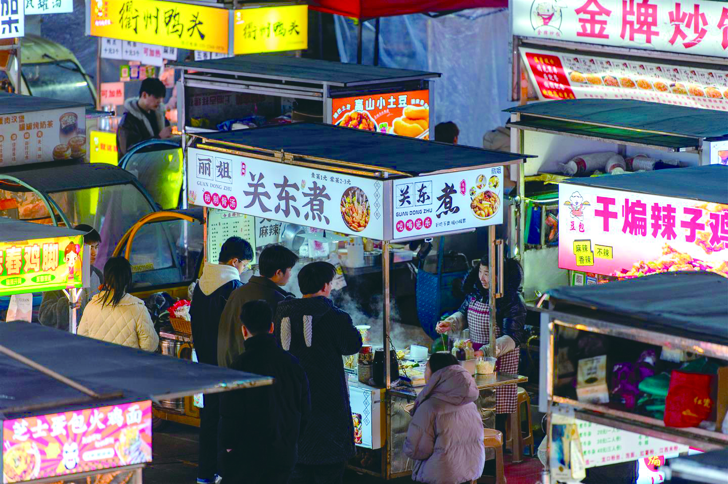 记者 胡肖飞 文/摄 1月6日晚,金华开发区金谷夜市,市民在寒冷的冬夜品尝美食。新年伊始,全市各地夜经济红红火火,烟火气十足。