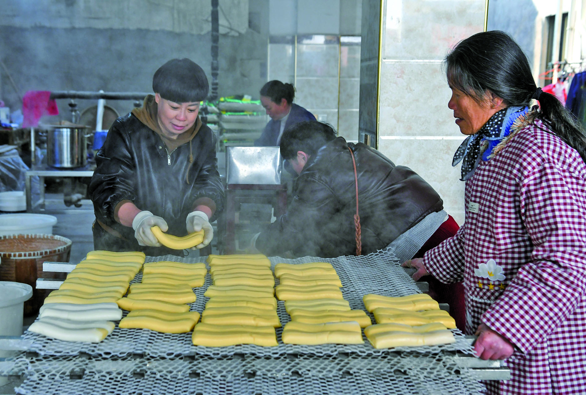记者 时宽兵 文/摄 1月7日,婺城区雅畈镇老街一家年糕加工作坊里热气腾腾,散发着浓郁的米香,加工年糕的居民接踵而至。农历新年将至,年糕加工作坊迎来忙碌时节,附近居民从家里带来精选的糯米、粳米、玉米等原料,在作坊里加工成年糕,自己食用或馈赠亲友。