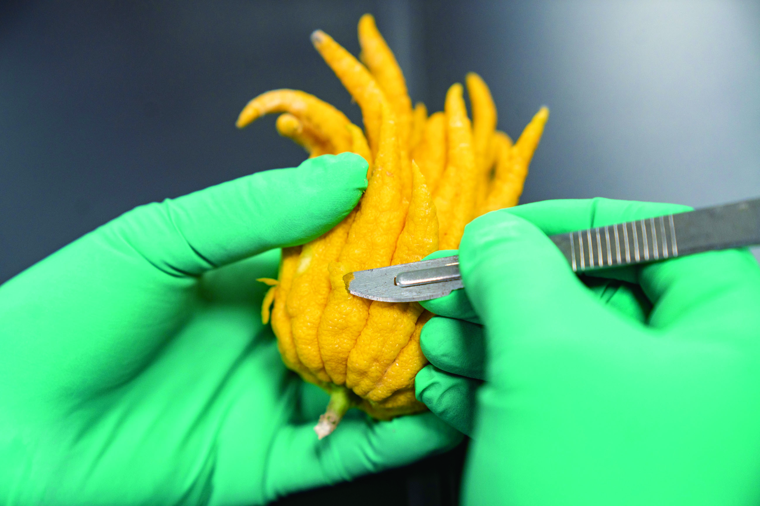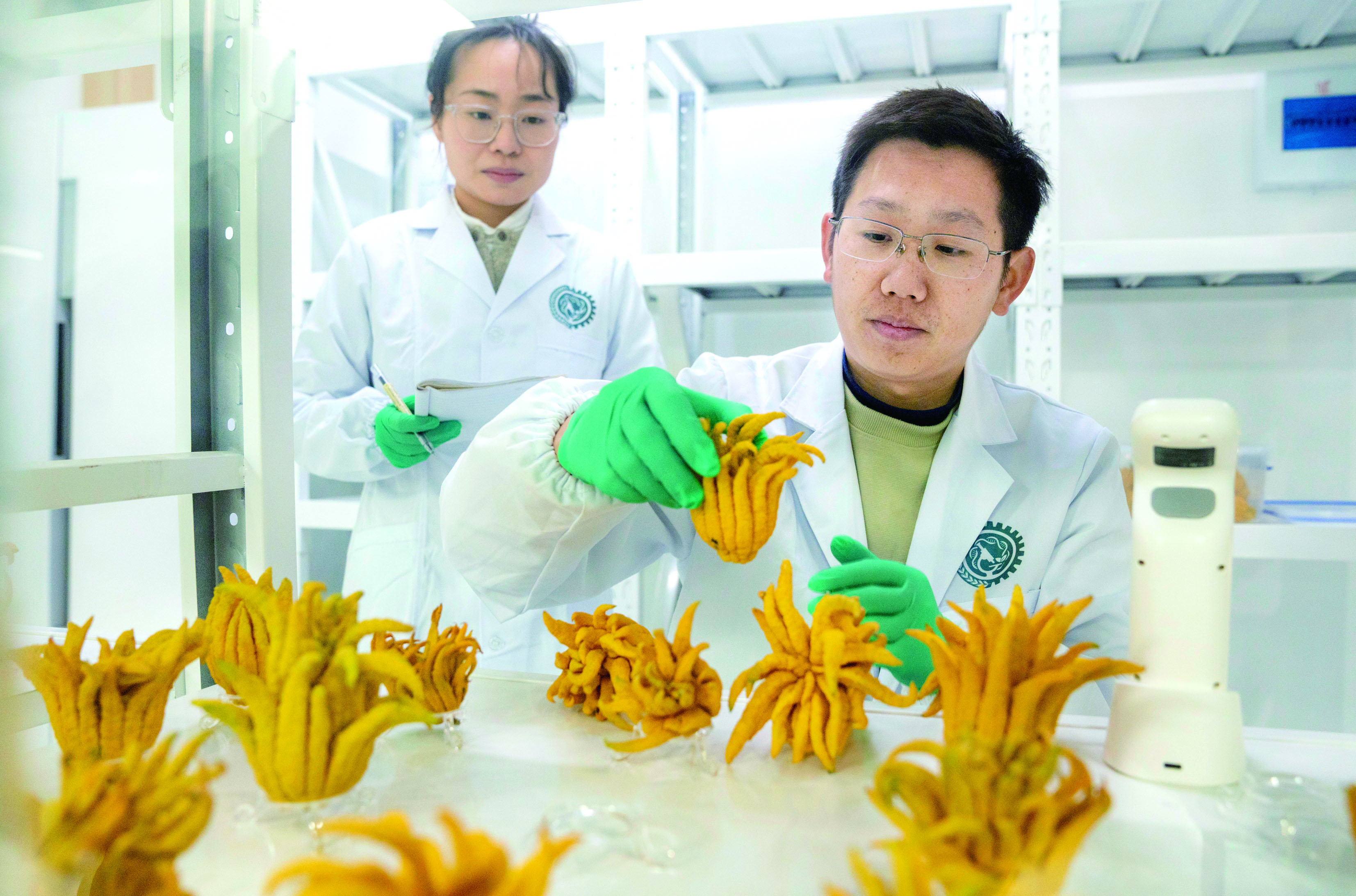 佛手种植、销售离不开年轻人,开发利用、技术创新更需要青年人才。建在北山口生产基地的金华佛手综合开发利用技术创新中心也来了多位年轻人,曹译文是浙江大学的博士,林雄来自江西农业大学。由市农科院组建的硕博团队在实验室专注佛手种质资源鉴定及遗传多样性研究,进行精油提取、原浆制备等精深加工,延长农产品产业链,推动佛手从农产品向大健康产品转型,为金华佛手全产业链发展提供科技支撑。