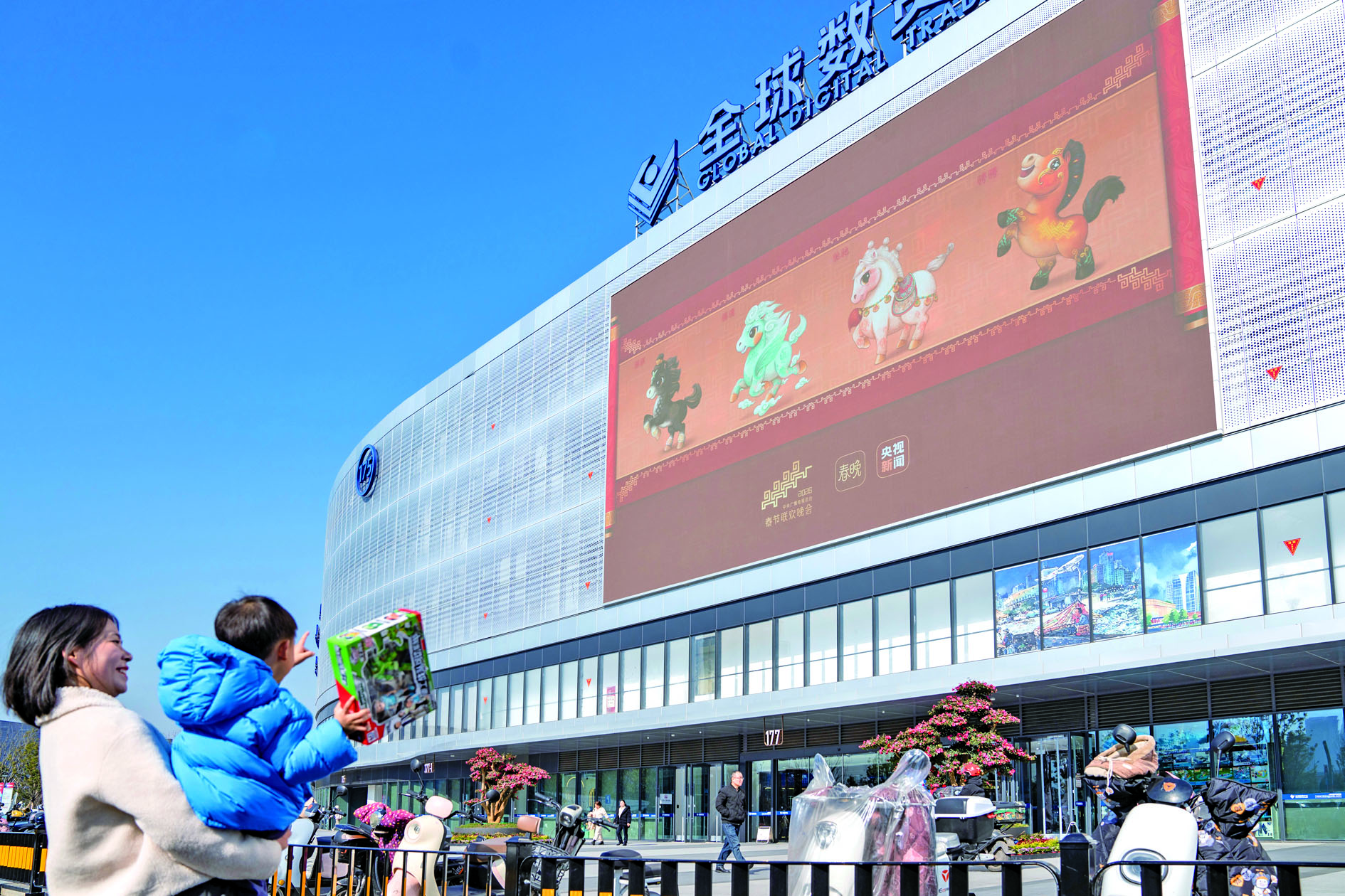 近日,中央广播电视总台《2026年春节联欢晚会》发布了春晚吉祥物形象。“骐骐”“骥骥”“驰驰”“骋骋”接连亮相义乌全球数贸中心、义乌之心、吾悦广场等城市核心地标与商圈,点燃了市民对新春的期待。