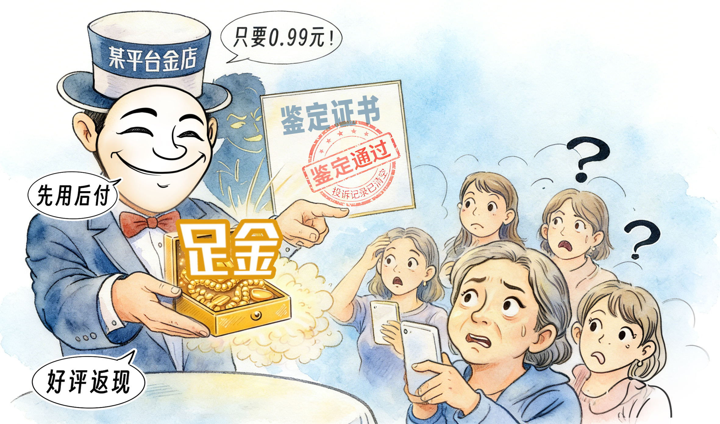 某电商平台上,宣称“足金工艺品”的商品,以“白菜价”“先用后付”等诱惑吸引消费者,靠“好评返现”炮制虚假口碑。