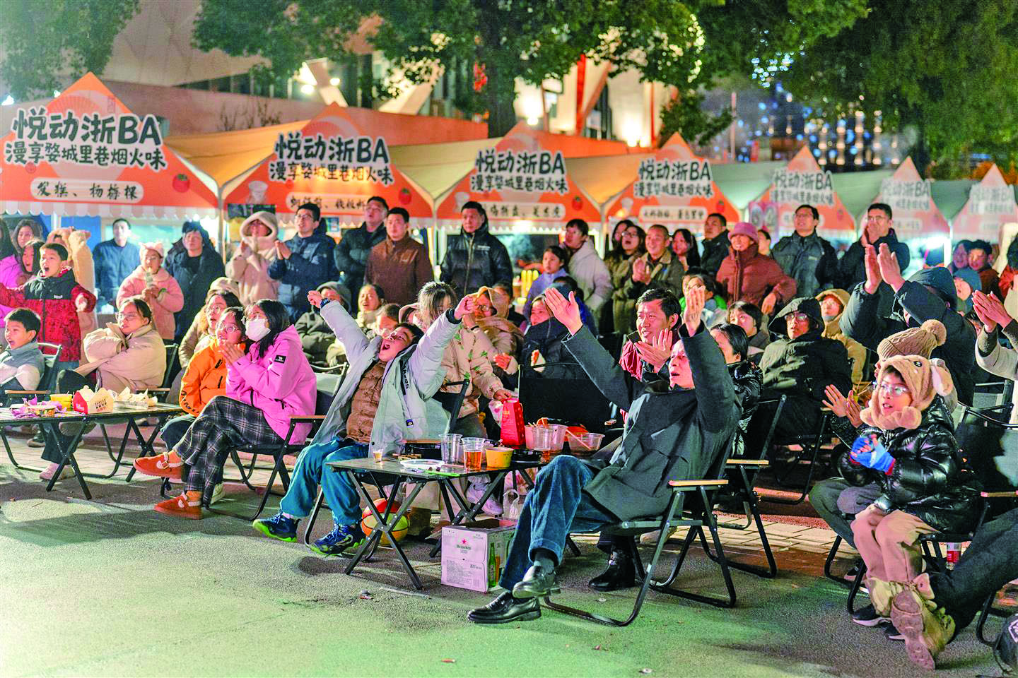 昨晚,金华市体育中心,金华队与台州队狭路相逢,迎来各自的小组赛收官战。赛场外,一场特色市集吸引双方球迷驻足打卡,成为连接赛事与城市的活力纽带,汇聚起火热人气。