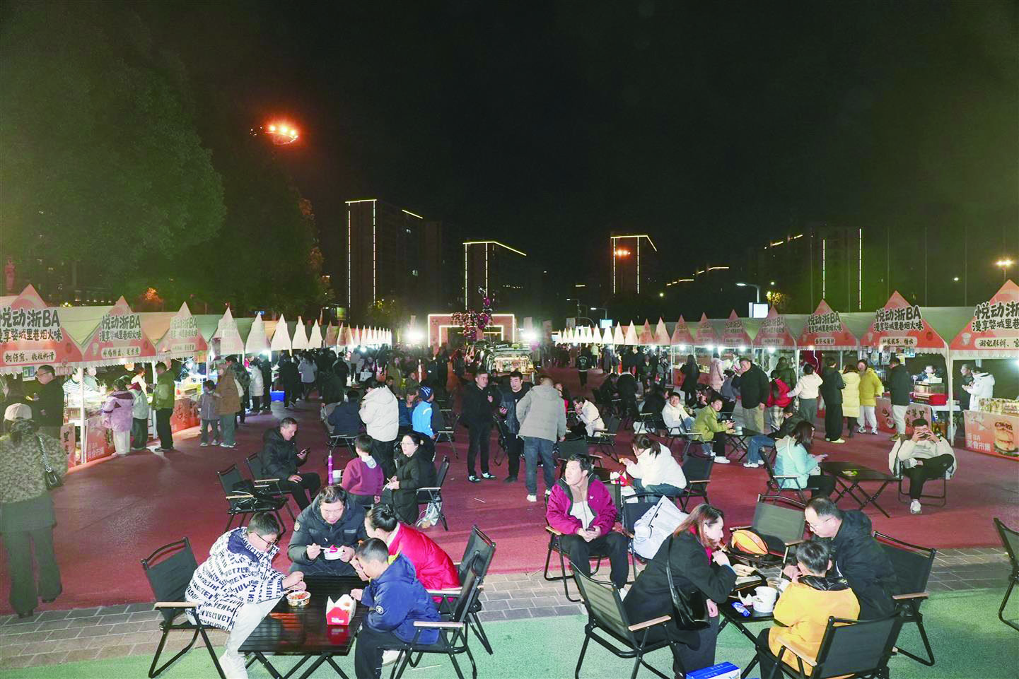 “麻糍怎么卖?”摊位前,食客们的询问声不时响起。摊主包登富一边忙碌一边介绍:“跟着‘浙BA’已经摆了好几场,前几场每晚能卖出2000多份。我家世代做手打麻糍,我也已经做了30年,希望把这门老手艺一直传下去。”