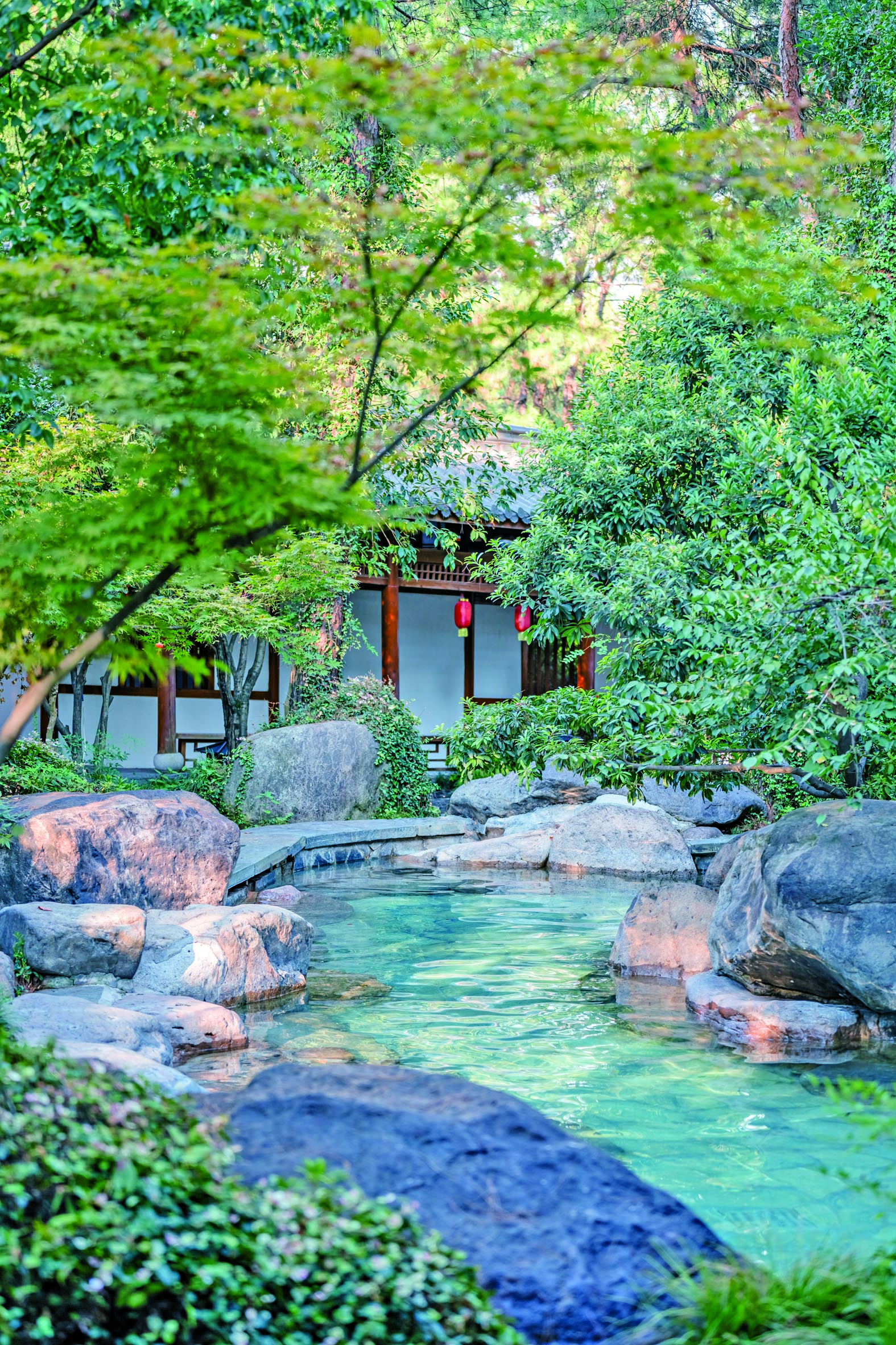 “酒店2018年开业,目前共有88间客房,每间均配有独立温泉泡池。眼下正值温泉旅游旺季,周末几乎都是满房状态。不少外地客人专程前来,就是为了体验在古韵建筑中享受私汤的感觉。”该酒店负责人沈挺介绍。
