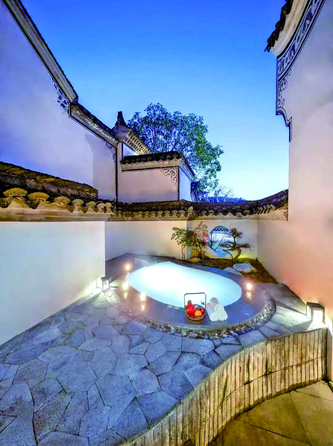 来自上海的游客赵女士介绍:“我特别喜欢这里的徽派建筑,古色古香很有味道。在这样一个历史感十足的院子里泡私汤,身心都得到了放松,感觉非常特别。”
