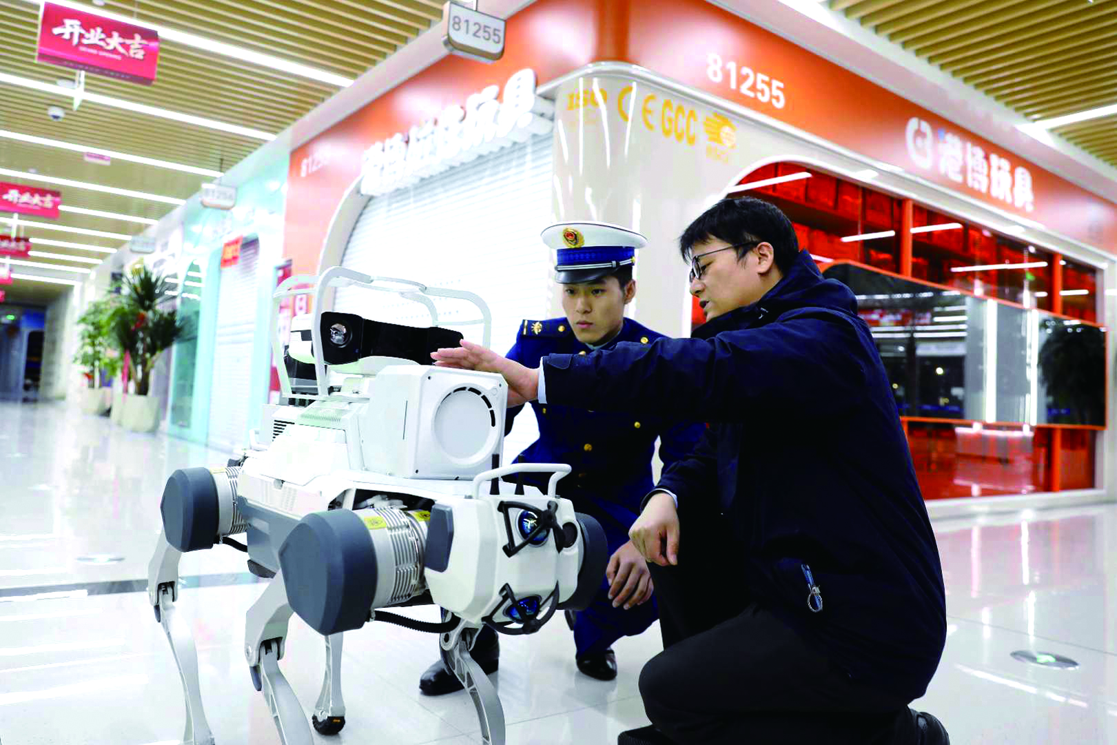 面对建筑体量庞大、商铺密集、传统消防监控存在死角的挑战,如何实现大型市场全天候、无盲区的消防安全管理?义乌市消防救援支队指导推动浙江中国小商品城集团股份有限公司创新引入智能四足机器人,将其深度融入日常安全巡检体系。如今,在日均客流量超21万人次的中国义乌国际商贸城,这群“智能更夫”已经成为“人防+技防+智防”三位一体智慧消防新防线的重要组成部分。