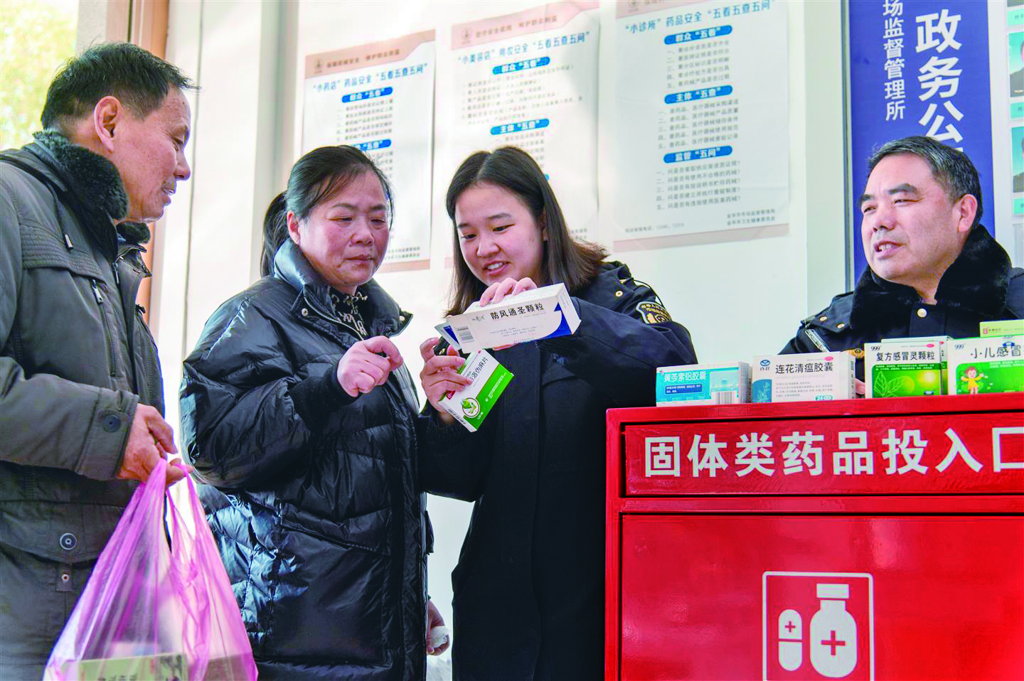 记者 胡肖飞 摄 1月13日,兰溪市市场监督管理局兰江所大厅里,市民把自家过期药品放入药品回收箱内。今年1月1日起,兰溪市市场监督管理局启动为期一年时间的“清药箱 护安康”家庭过期药品回收活动,通过当地9个统一回收点,方便市民集中投放家庭过期药品,并定期对回收药品进行专业处理。