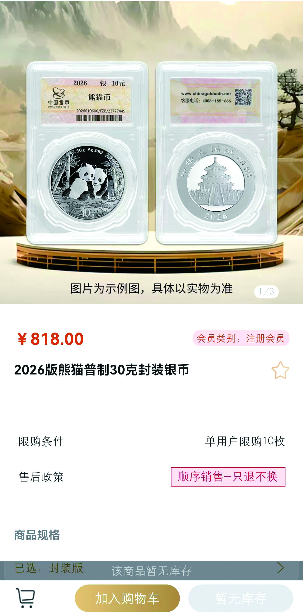 与曹先生相比,市民洪伟最近才开始关注熊猫银币。去年12月底,他在贵金属网购平台下单了10枚熊猫银币,当时的价格还是598元/枚。
