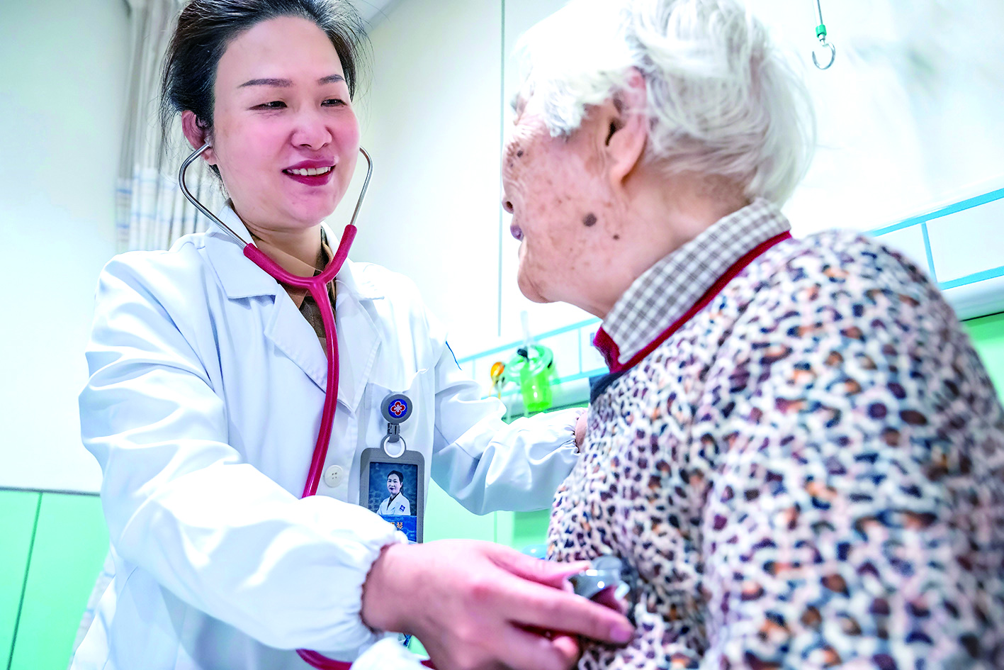 “今天气色不错,咳嗽也好多了,放心吧,很快就能出院回家了,肯定不耽误跟子女过年。”病房里,老年医学科主任王惠琴正在查房,她一边仔细检查患者的恢复情况,一边亲切地唠几句家常。