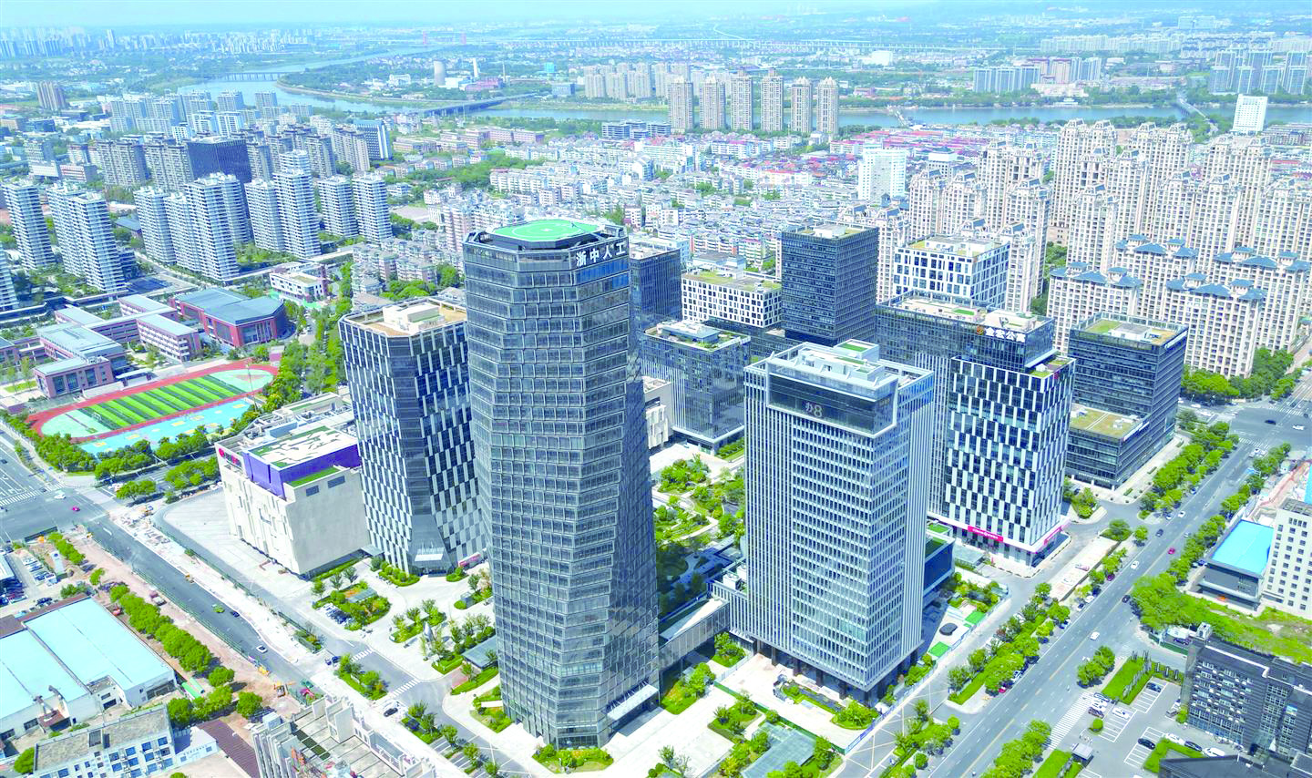 在金华信息经济产业园(“金华之心”),沿园区中轴线自东向西,浙商银行金华分行、泰隆银行金华分行、金投集团依次布局,形成一条要素集聚的“金融走廊”;视线向上,园区最高楼——11号楼的顶端,“浙中人工智能谷”的铭牌熠熠生辉,标志着这里正成为培育新质生产力、抢占人工智能产业高地的战略要地。金融活水与前沿科技在此交汇融合,其背后是金开产业发展集团推动平台能级跃升、构筑高端产业强磁场的战略布局。