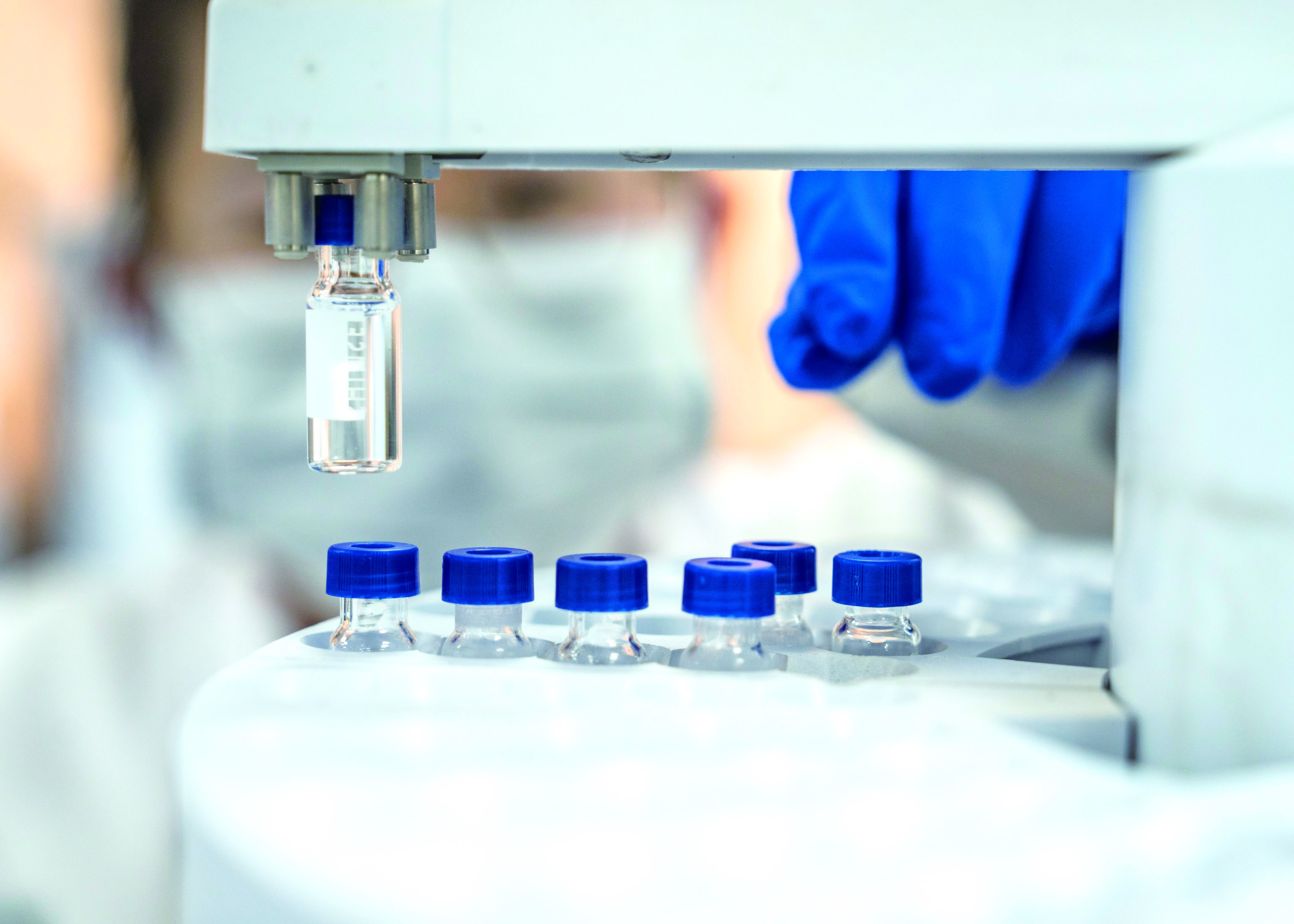 花园生物的科研人员利用精密仪器设备为检测样品色谱取样