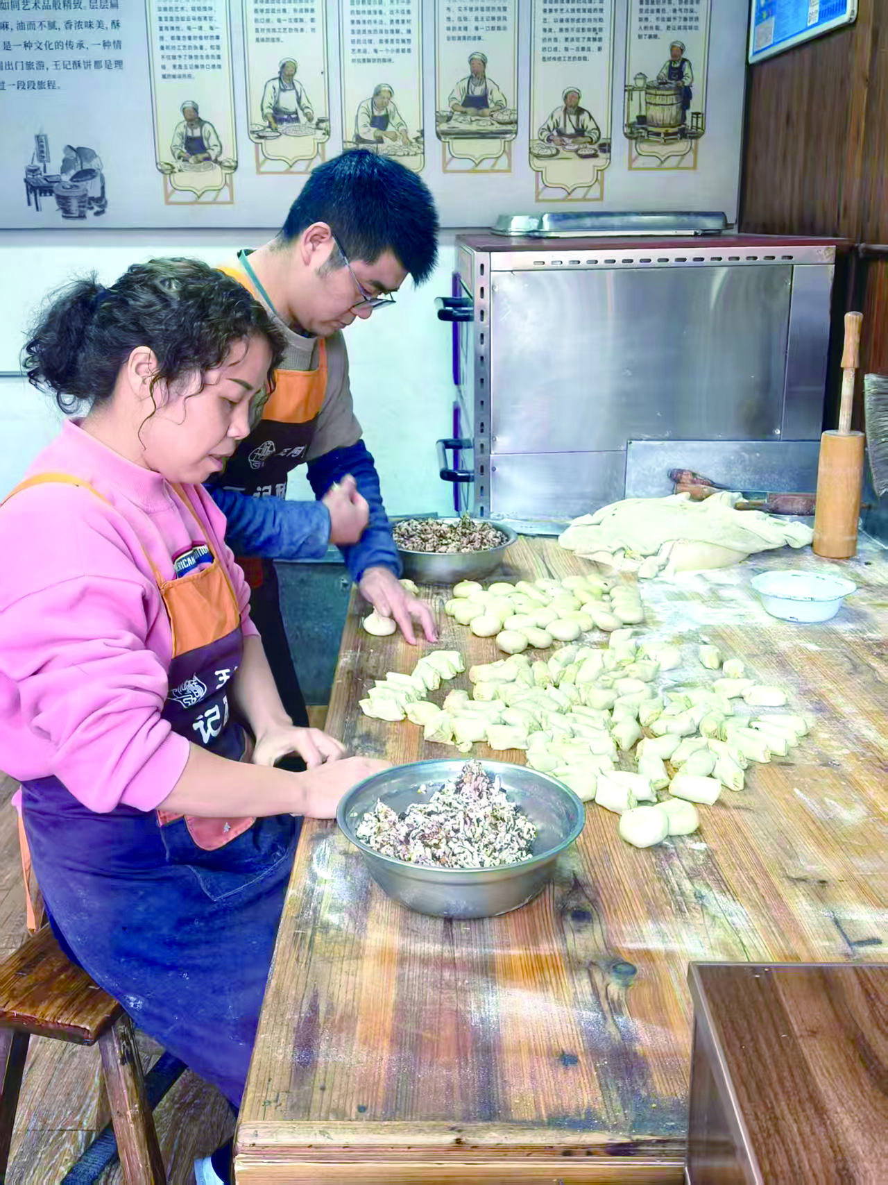 王强的专注,成了手工酥饼最好的加持。因听不到外界的噪声,他能全身心投入到制作中,指尖对酥饼的触感、对炉温的感知,都比常人更为敏锐。“聋哑人做手艺有优势,心能静下来,专注力特别强。”王泽法说,如今他和妻子每天傍晚都会来店里帮忙售卖,让王强和儿媳稍作歇息,一家人齐心协力守护这份家业。