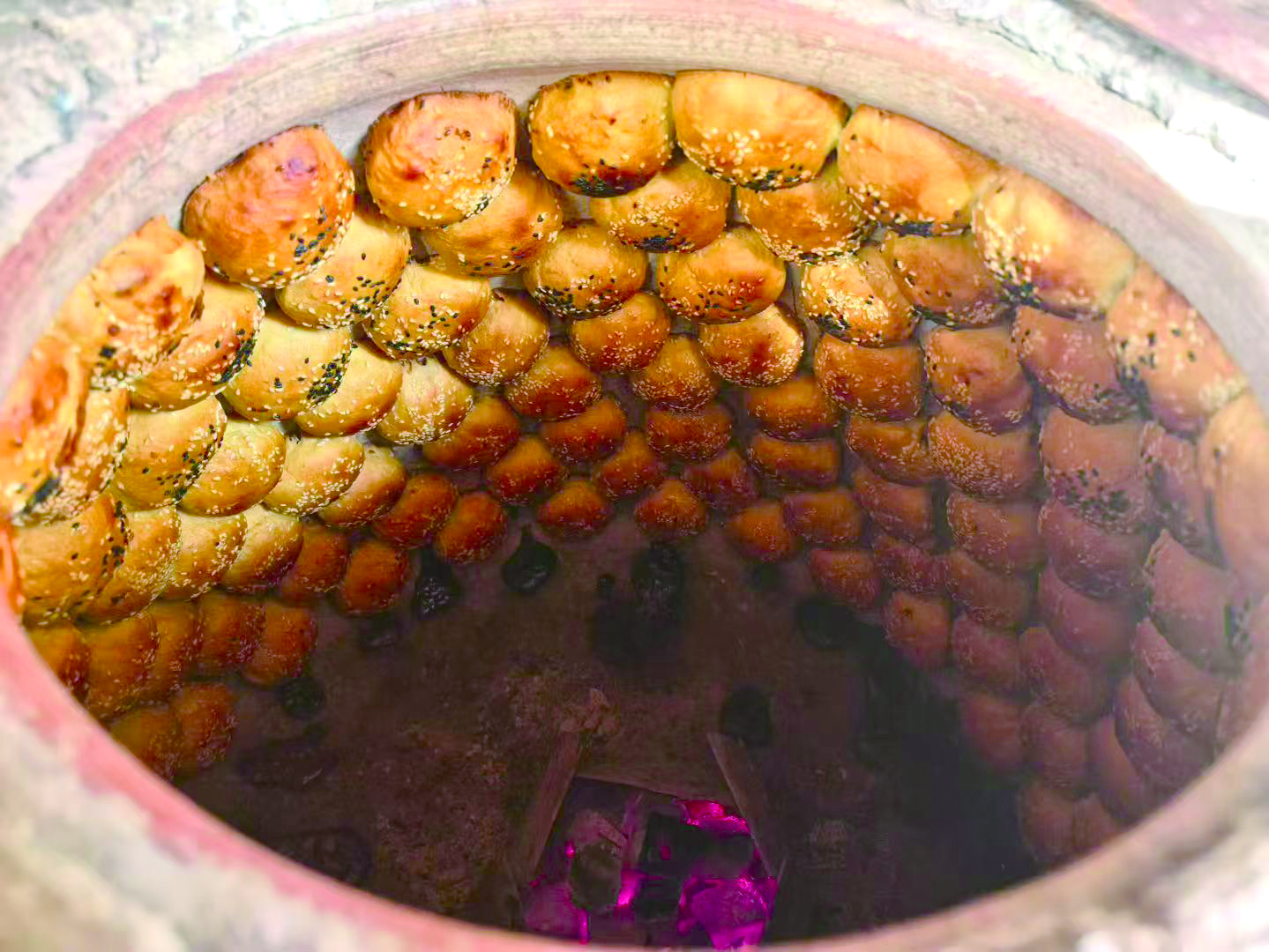 为了兼顾口感与效率,他们也做了细微调整:大酥饼依旧坚持炉膛炭烤,保留最传统的风味;小酥饼则改用烤箱烘烤,避免炉膛贴饼时上下受热不均、易焦煳的问题。