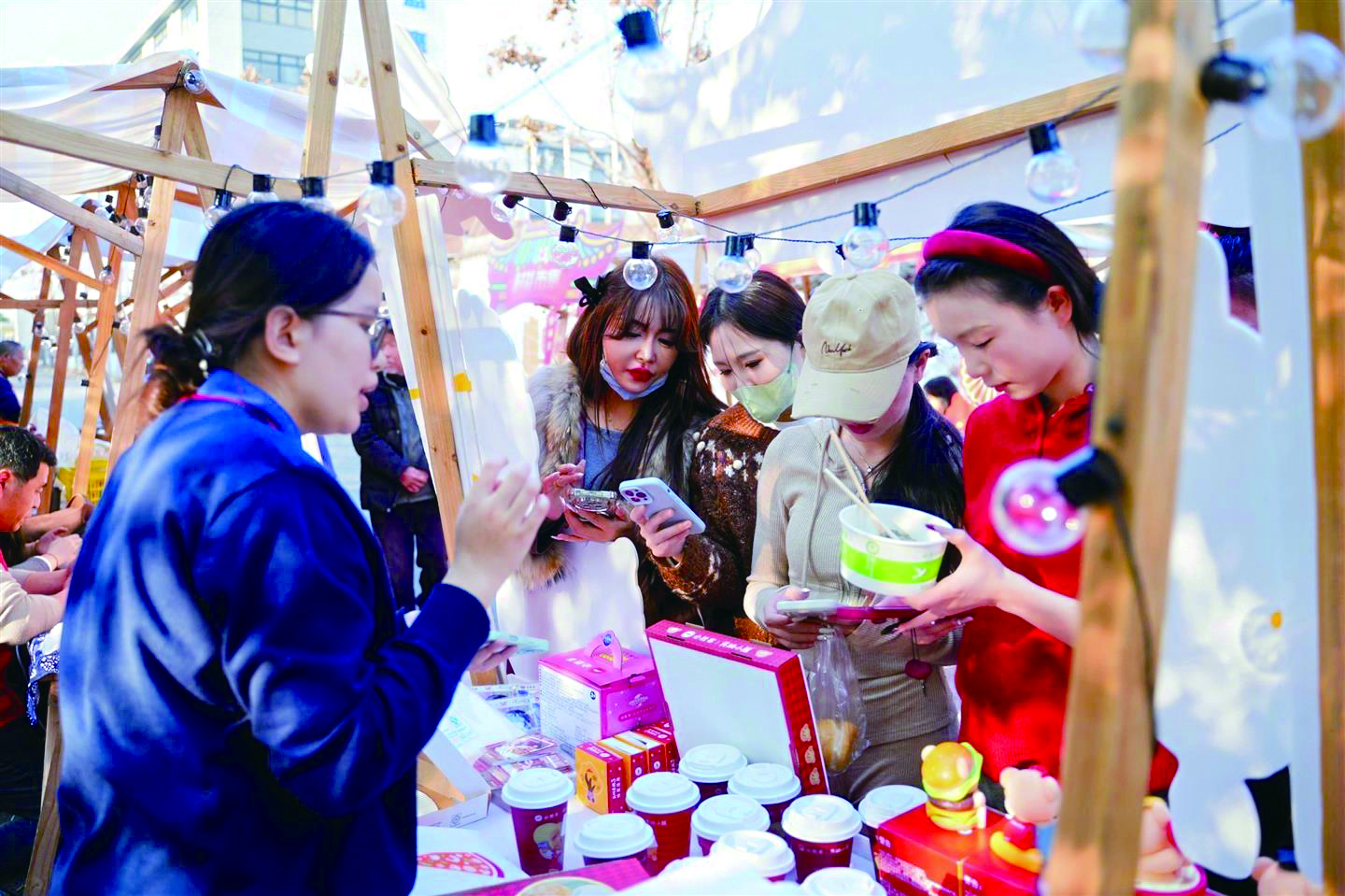 市集从简单展销到精致多元,烟火气里藏共富密码。村晚的魅力不仅在舞台上,更在台下的市集里。三年间,市集从最初简单的农特产品展销,逐渐升级为集“好物选购、非遗体验、趣味互动、公益服务”于一体的精致场景,成为展现乡村产业活力、助力邻里共富的重要平台。从“卖东西”到“晒特色”,从“单一购物”到“多元体验”,市集在保留烟火气的同时,更成为推动农文旅融合、促进村民增收的重要载体,让乡村的“好味道”变成“好收入”。