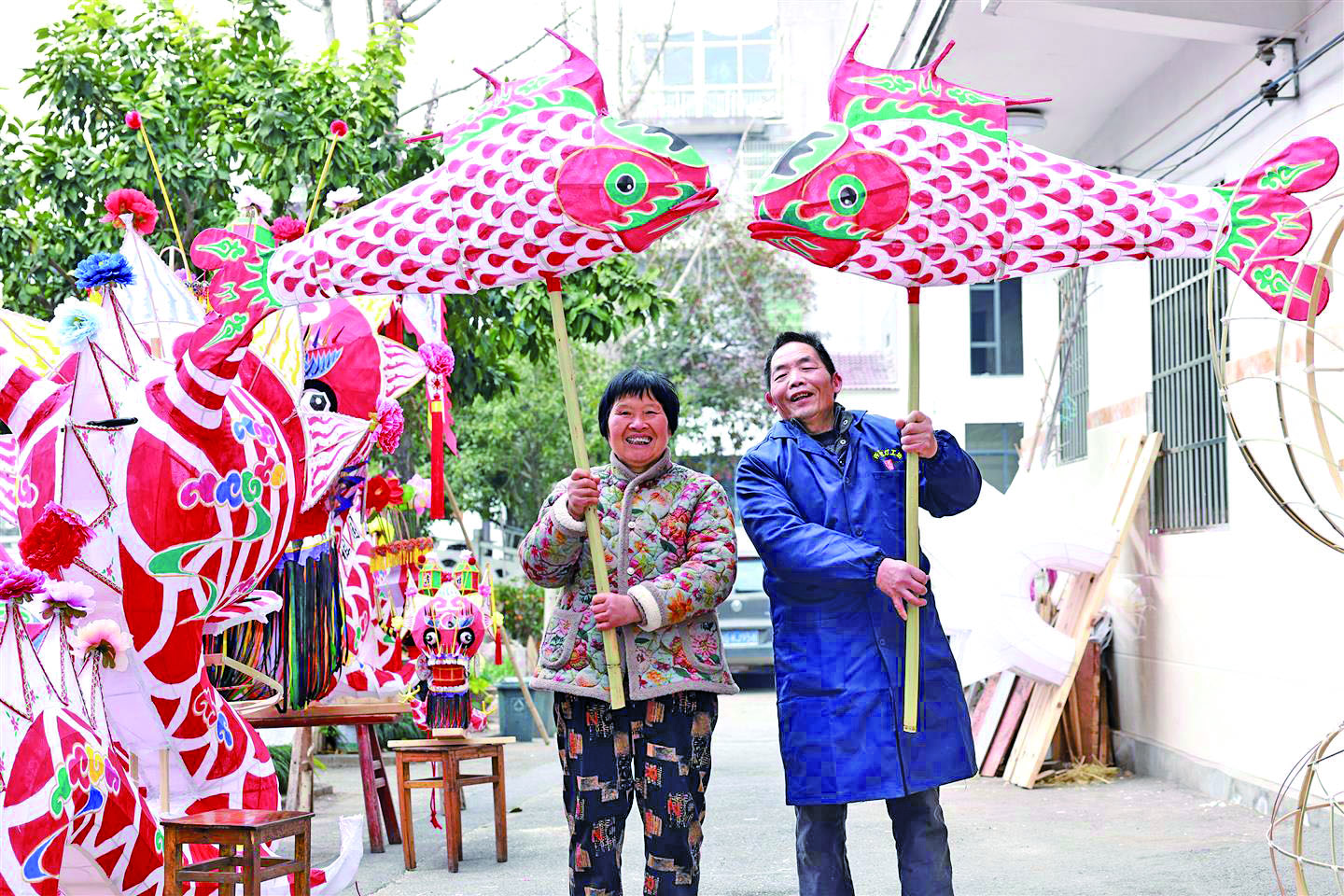 通讯员 胡扬辉 文/摄 连日来,东阳市画水镇许宅村新厅自然村“许宾花灯工坊”,不时吸引路过的村民前来围观。农历新年临近,该工坊迎来产销旺季,前来订购板凳龙灯、鱼灯、无骨花灯、竹丝灯等年味灯笼的客户络绎不绝。