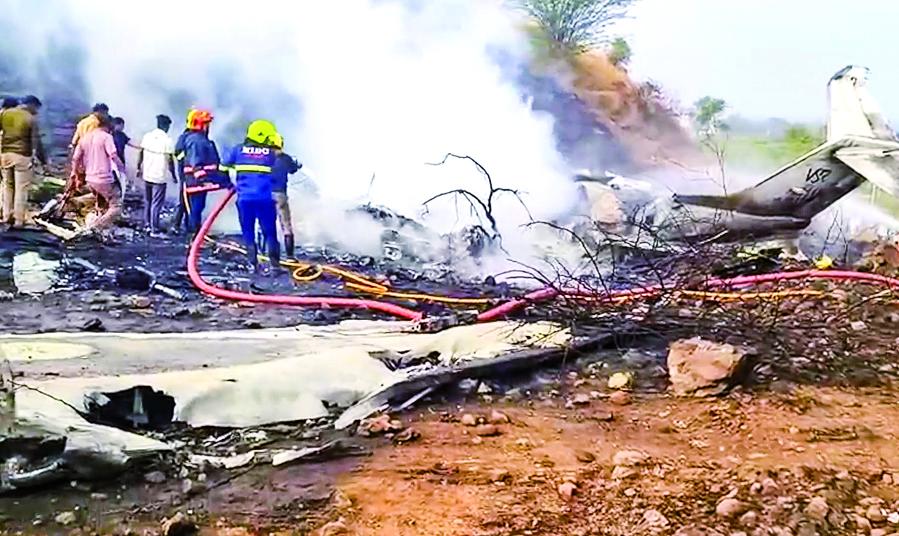 1月28日,救援人员在印度马哈拉施特拉邦浦那地区的坠机现场工作。 据印度媒体报道,一架小型客机当地时间28日上午在印度中部马哈拉施特拉邦浦那地区坠毁,机上5人全部遇难。 新华社发