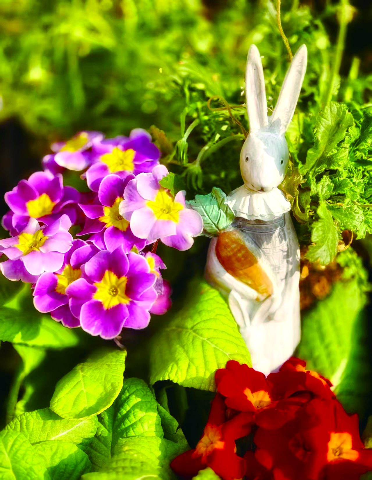 报春花迎着深冬的阳光尽情绽放,抱着胡萝卜的兔子姐姐似乎也在等待什么……莫非,春天真的不远了。
