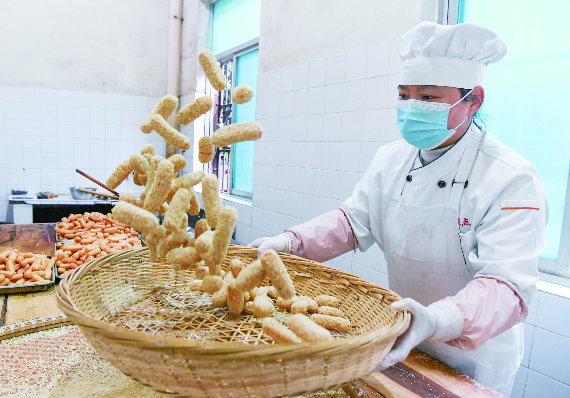 记者 时宽兵 文/摄 昨天,在市区一家糕点坊里,糕点师在制作金华传统糕点毛坦。毛坦以白毛芋和糯米为主要原料,又称麻坦、蟠桃果,其制作技艺被列入金华市非物质文化遗产名录。随着春节临近,毛坦等传统糕点进入了产销旺季。