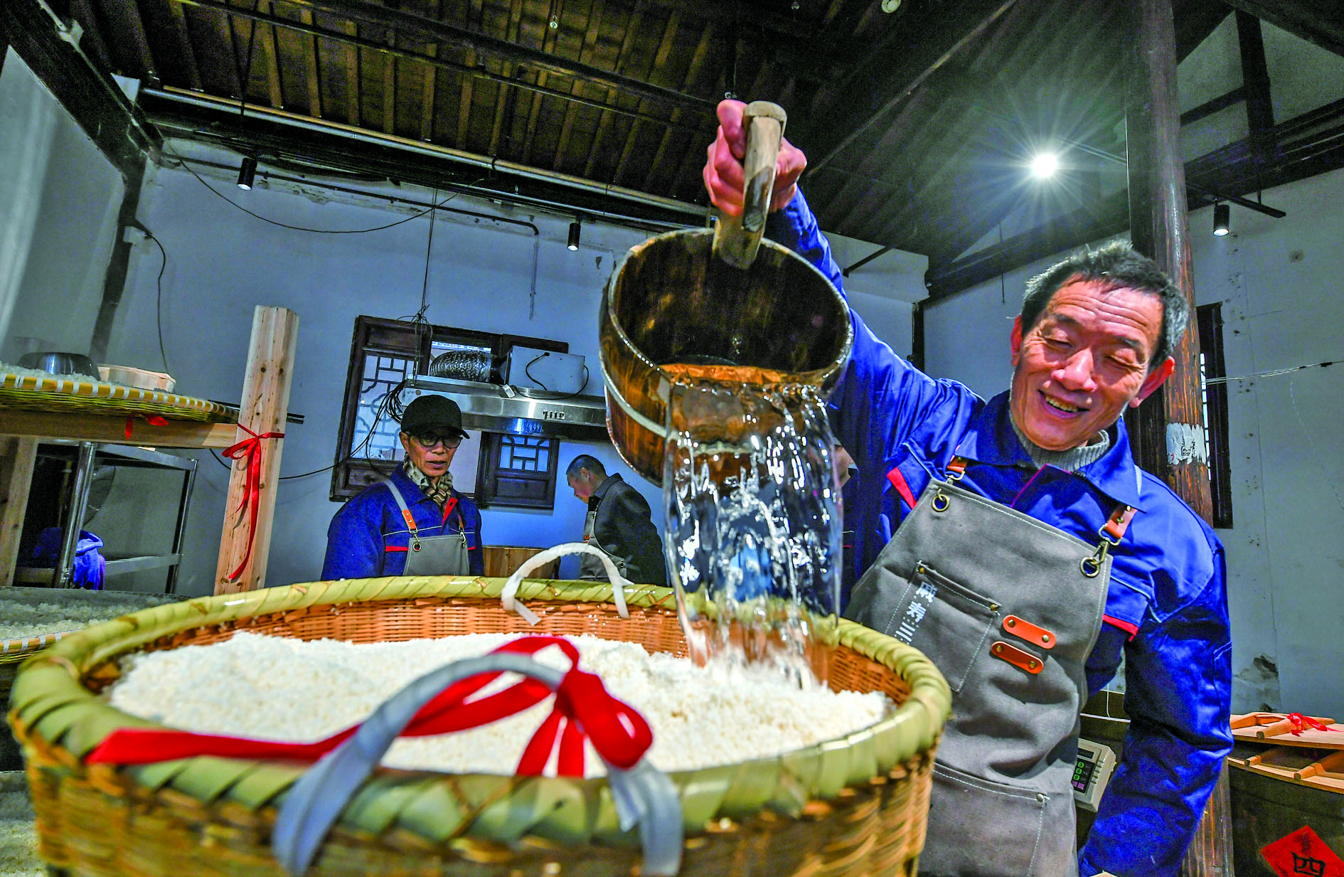 2月1日,金华酒传统技艺冬酿文化体验日活动在市区婺州古城酒坊巷举行。现场浸米、蒸饭、落缸、发酵……一道道古法酿造工序,吸引众多市民游客驻足体验、打卡互动,在酒香氤氲中迎接即将到来的马年新春。