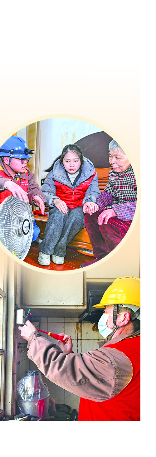 在90岁的独居老人梁梅娟家中,“幸福来敲门”小分队带着工具包,对老人家中的插座、开关、照明灯具、取暖设备等进行“拉网式”检查。