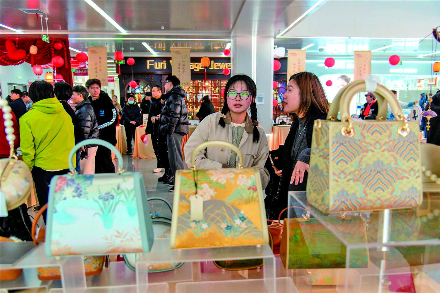 记者 胡肖飞 文/摄 昨日,为期5天的“跟着春晚购全球 数贸玩‘赚’年货节”义乌全球数贸中心年货节开幕。在义乌全球数贸中心非遗国风市集上,众多中外顾客前来感受中国非遗魅力。