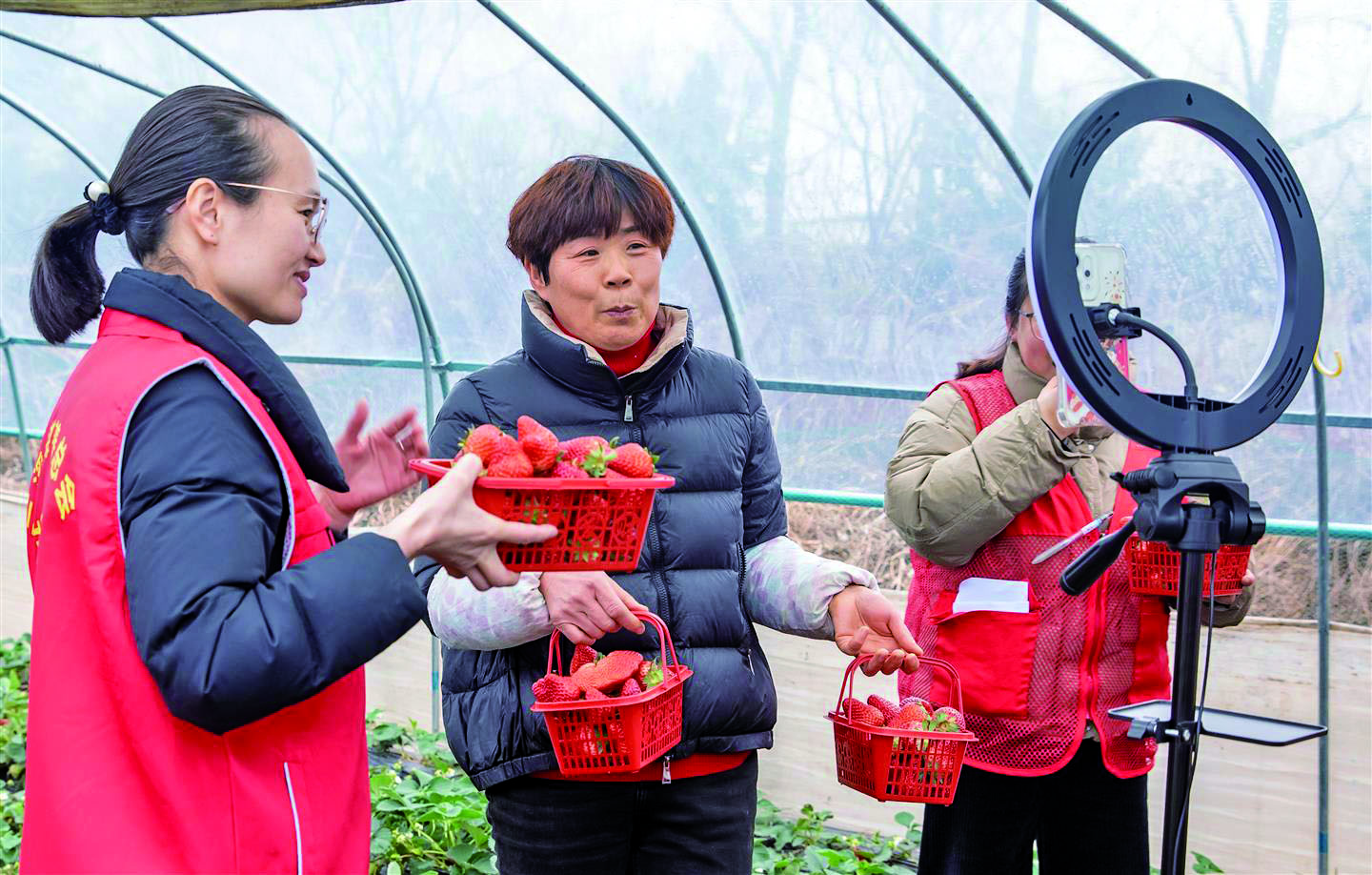 记者 李建林 文/摄 连日来,兰溪市云山街道枣树社区退休党员曹淑娟和社区“枣妈妈”直播团队在兰丰草莓园直播带货,两小时内成交数十单。 据悉,该社区探索开展“银龄主播”带货行动,组织老同志助农直播。