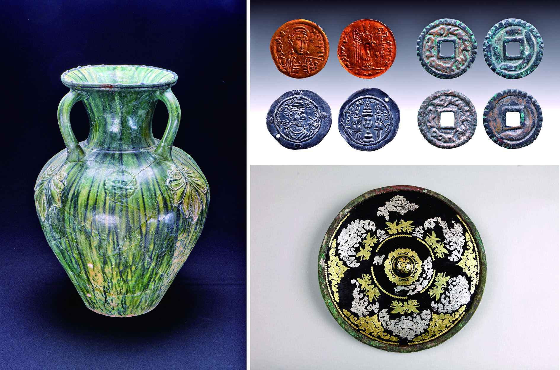 拼版照片:新疆吐鲁番市巴达木东晋唐时期墓地出土的部分文物(左:三耳绿釉罐,右上:拜占庭金币、萨珊银币、突骑施钱币,右下:金银平脱花鸟纹铜镜)(资料照片)。 2月4日,中国社会科学院考古学论坛在北京举行。中国社会科学院发布“2025年中国考古新成果”。河北阳原县新庙庄旧石器时代遗址、河南新郑市裴李岗石器时代遗址、河北张家口市郑家沟红山文化遗址、新疆温泉县呼斯塔青铜时代遗址、山东青岛市琅琊台战国秦汉时期遗址、新疆吐鲁番市巴达木东晋唐时期墓群6个项目入选。 新华社发