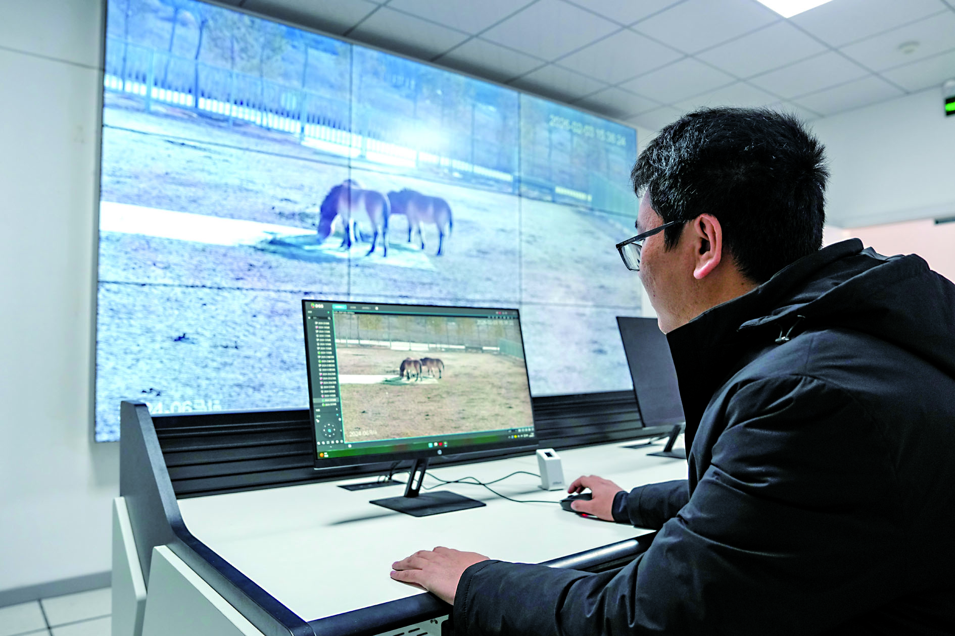 2月3日,在甘肃濒危动物保护中心普氏野马饲养繁育基地,工作人员通过监控观察普氏野马进食情况。 普氏野马是国家一级保护动物,全球濒危大型野生动物,曾一度在野外绝迹。为拯救这一珍稀物种,1985年我国启动“野马返乡”计划,陆续从国外引回普氏野马,在新疆、甘肃等地繁育,并进行野化放归试验。 二十世纪八十年代末,位于甘肃省武威市的国家林业局甘肃濒危动物保护中心先后从德国、美国等国家引进18匹普氏野马种源,正式开启人工繁育与保护工作。历经近40年科学保护与系统繁育,保护中心普氏野马种群数量稳步增长,遗传多样性水平持续提升,为我国普氏野马物种恢复与野外重建作出重要贡献。 截至目前,该中心依托独特的地理与生态优势,成为国内重要的普氏野马种源基地,已累计向敦煌西湖国家级自然保护区野化放归野马56匹,现存栏野马45匹。 新华社发