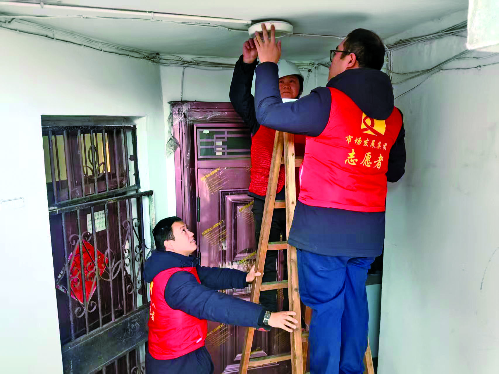 老小区没有物业,也没有业委会,安装楼道灯存在困难。作为市场的管理方,金华市市场发展集团第一分公司党支部的党员凭借属地责任主动“认领”任务。他们从社区了解到居民需求后,第一时间赶到现场,对平台的老旧线路进行了初步安全排查,为后续工作做好了准备。