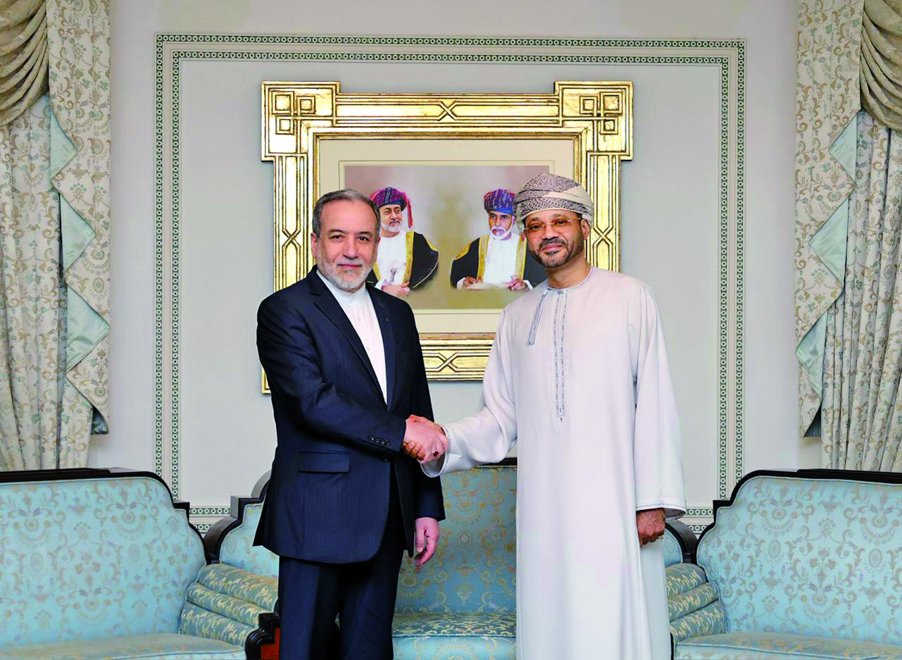 2月6日,在阿曼首都马斯喀特,阿曼外交大臣巴德尔(右)会见伊朗外长阿拉格齐。 伊朗和美国2月6日在阿曼首都马斯喀特举行谈判,伊朗外长阿拉格齐和美国总统特使威特科夫率团参加,阿曼担任谈判中间方。 新华社发