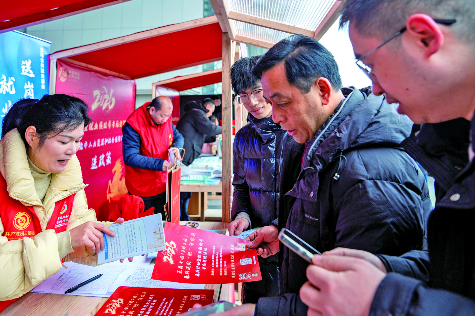 活动现场设有信息展示咨询区,汇集多家企业的用工需求。人社局工作人员坐镇,解读就业创业、技能培训等方面的政策,并发放相关资料,让惠民服务更接地气。后宅街道同步开展挥毫送春联活动,并提供路线咨询等便民服务。