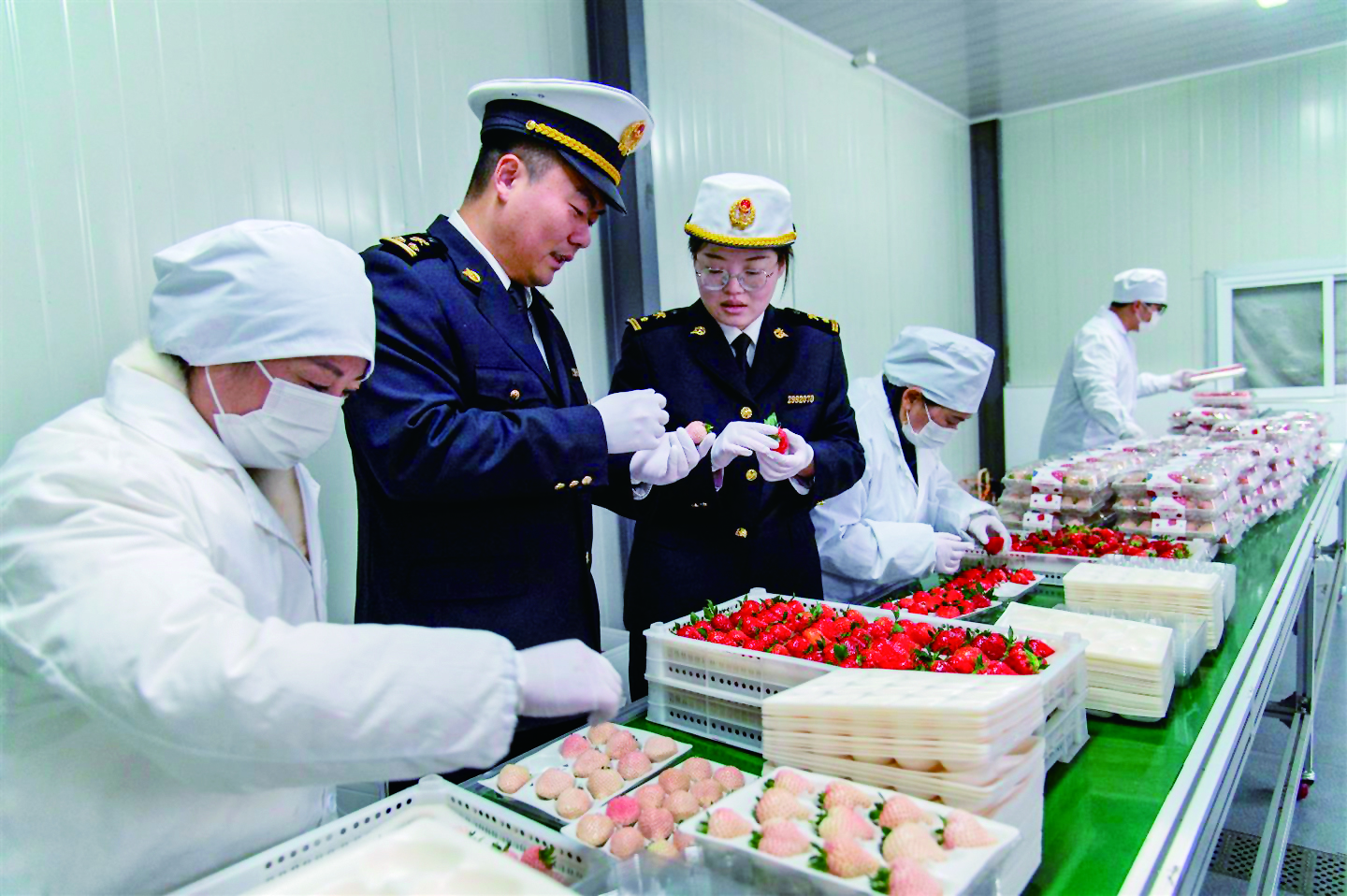 记者 胡肖飞 文/摄 新年伊始,浦江县的新鲜水果出口迎来“开门红”。昨日下午,一批越秀、隋珠、越雪妃等优质品种的浦江草莓经金华海关人员检验检疫合格后,搭乘国际直飞航班运往新加坡,成为全省新年首单出口的草莓产品。为护航新年首单草莓新鲜出海,金华海关提前对接服务,全程协助企业合理倒排时间、规范申报操作,落实出口农产品属地查检绿色通道,实现鲜果通关“零延时”。此次出口,进一步打响了金华草莓的国际知名度,拓宽了浙江特色农产品的海外市场通路,为新年农产品贸易注入强劲动力。