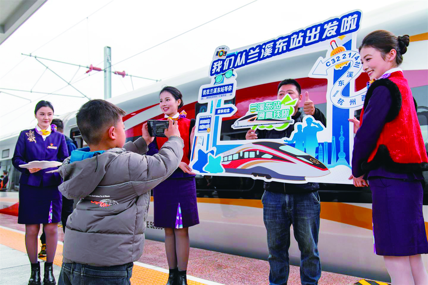 本报消息(记者 叶永永/文 胡肖飞/摄)昨日上午,新建金华至建德高速铁路兰溪东至建德段(简称金建高铁兰建段)开通运营,成为“十五五”长三角开通运营的首条高铁。
