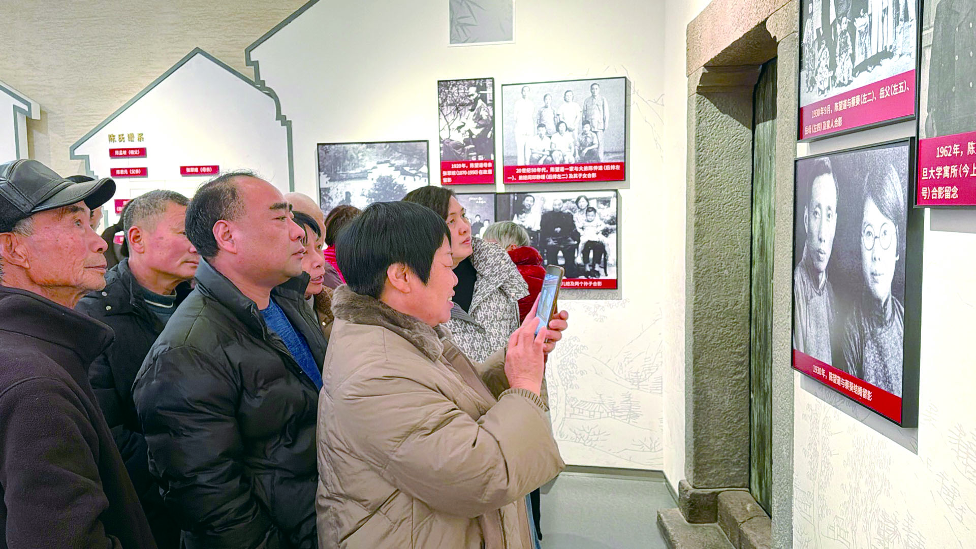 春节里,分水塘村完整保留了春晚分会场取景所用的灯笼、花灯等道具。连日来,分水塘村车来车往,分外热闹。在来往的人群中,有不少家住附近的老人,他们对村庄历史和陈望道一家的情况较为熟悉。他们在陈望道及其家人的照片前讲述过去的事情,常引得边上游人驻足倾听。