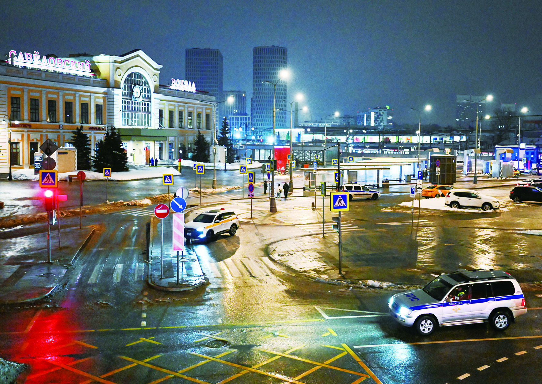 这是2月24日在俄罗斯首都莫斯科一个火车站广场拍摄的爆炸事件现场。 新华社发