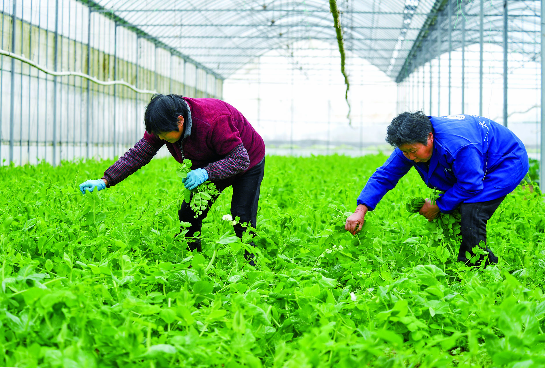 昨日,在婺城区琅琊镇的金华市暖田农业有限公司蔬菜大棚里,村民忙着采收春季新鲜蔬菜,丰富百姓的“菜篮子”。