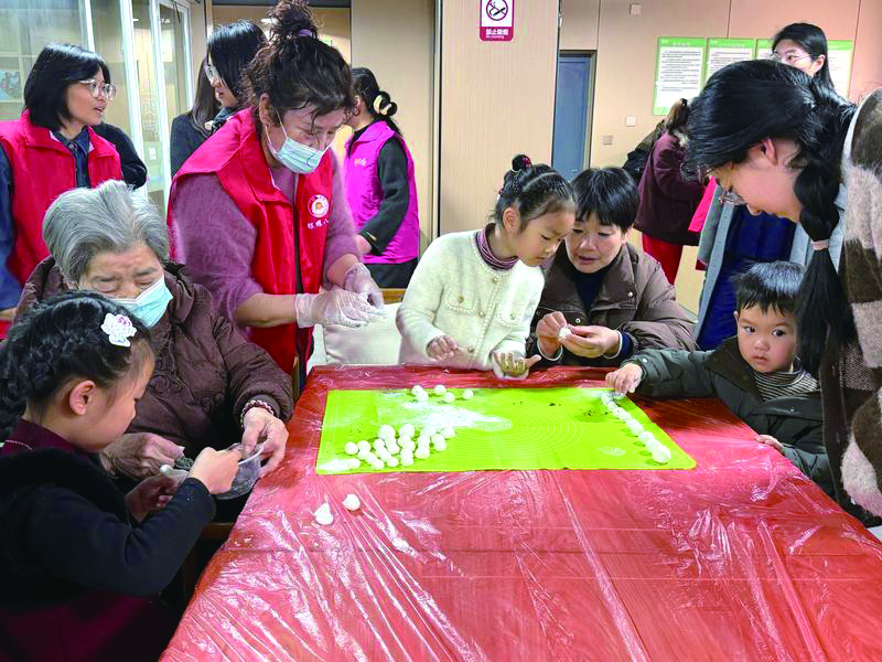 最温馨的环节当属祖孙携手包汤圆。老同志手把手教小朋友揉面、包馅,一双双小手捏出形态各异的汤圆,满是童真与温情。灯谜区里老少同心探讨谜底,花灯区中孩子在长辈协助下折卡纸、搭灯架,一个个创意花灯承载着美好祝福。工作人员与志愿者将大家亲手制作的汤圆打包,带着甜蜜的汤圆与真挚的节日问候,上门走访慰问社区独居老人。