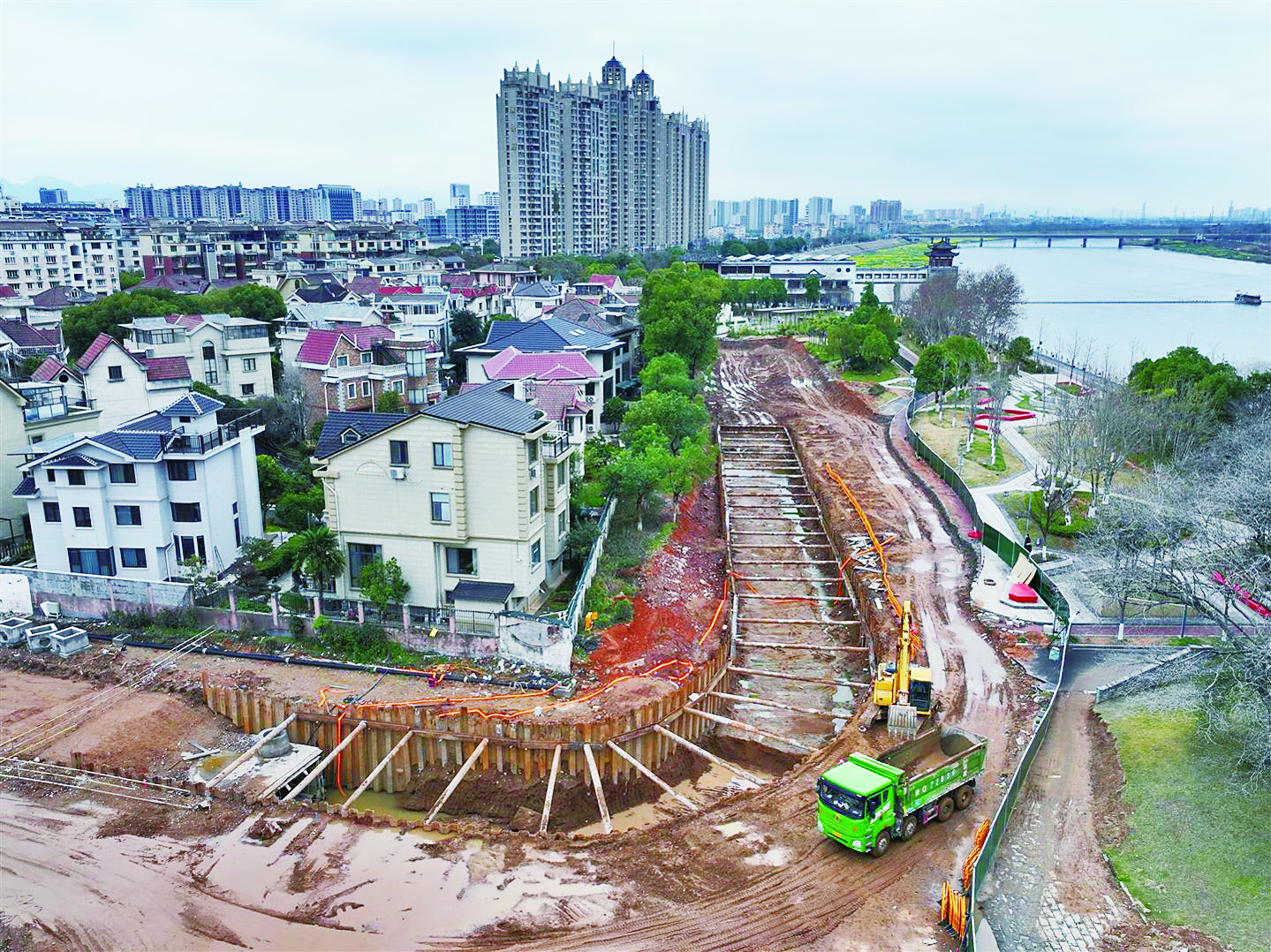 本报消息(记者 俞夏冰 文/摄)昨日,在开发区滨江路地下雨水箱涵及绿道修复提升改造工程(婺州街—双溪西路)施工现场,施工机械有序运转,工作人员各司其职、干劲十足,在严格落实各项保障措施的前提下,奋力冲刺民生工程建设“开门红”。