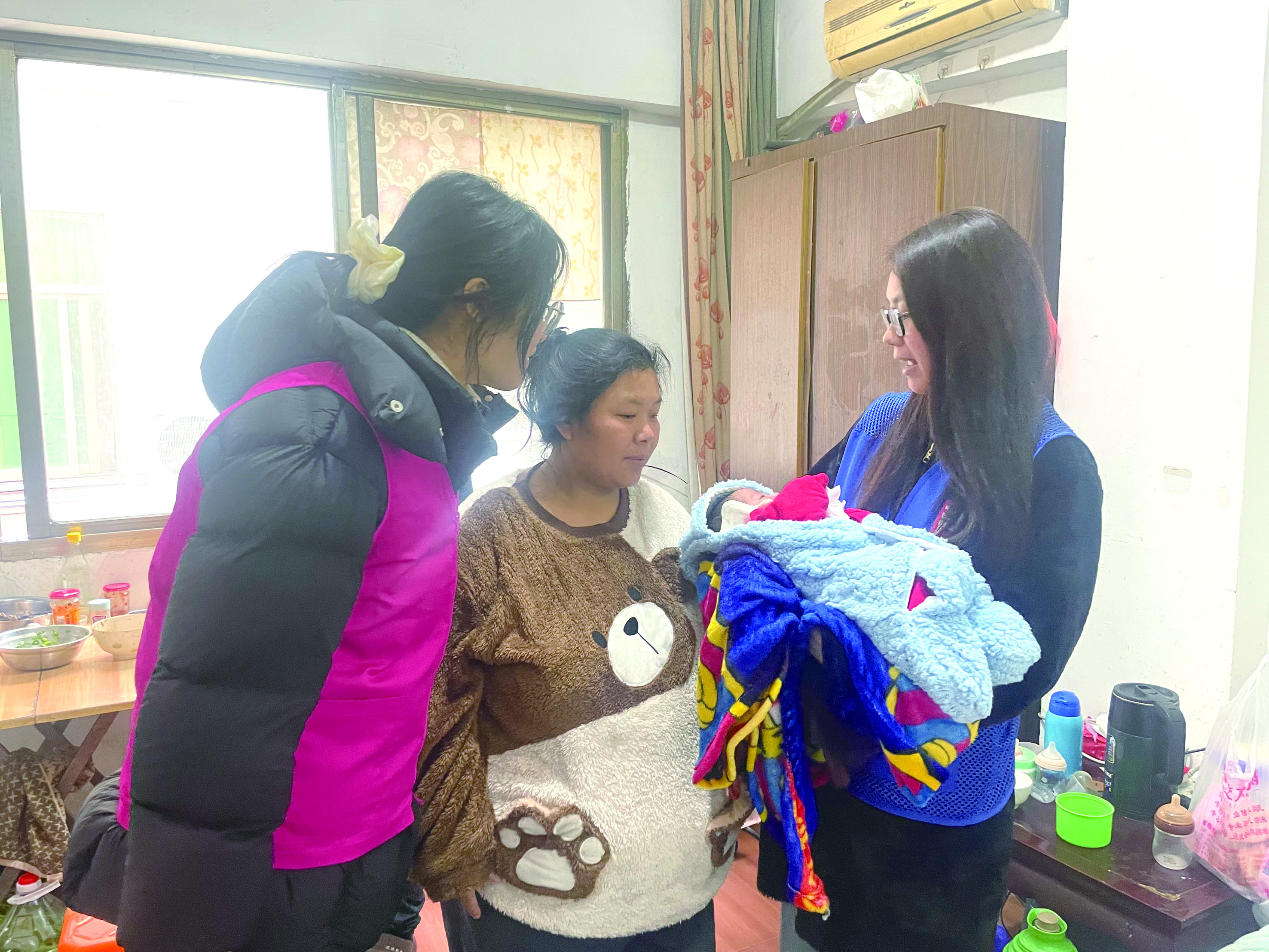 屋内暖意融融,摇篮里的宝宝睡得正香。徐女士忙前忙后招呼大家坐下,语气里已没有了孕后期的焦虑,取而代之的是为人母的从容与踏实。网格员询问了母子俩的身体状况,从产后复查到宝宝喂养,从情绪状态到家庭照护,事无巨细。