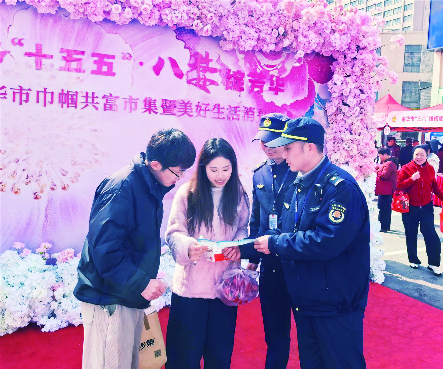 记者 吴璇 文/摄 近日,市综合行政执法局开发区分局三江中队执法人员走进金华商城女性专场招聘会活动现场,为求职者与用工企业送上一份“法治礼包”。 执法人员通过发放宣传资料、以案释法等形式,向现场群众普及劳动用工、安全生产、规范经营等相关法律法规,进一步提升求职者和用人单位的法治意识。针对有开店意向的市民,执法人员还送上《开店一类事服务指南》,详细解读开店流程、法律风险及合规要求,助力创业者依法依规迈出创业第一步。