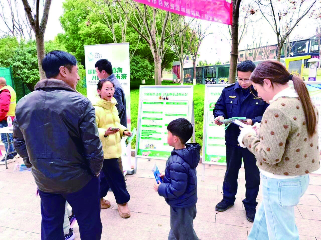 在互动咨询区,4个部门的工作人员化身“生态科普宣传员”,耐心解答市民的问题,细致讲解野生动植物识别技巧、受伤野生动物的规范救助途径、非法采挖和交易的法律后果等知识,并向市民发放宣传手册、折页、海报等物料,把生态保护理念送到市民手中。