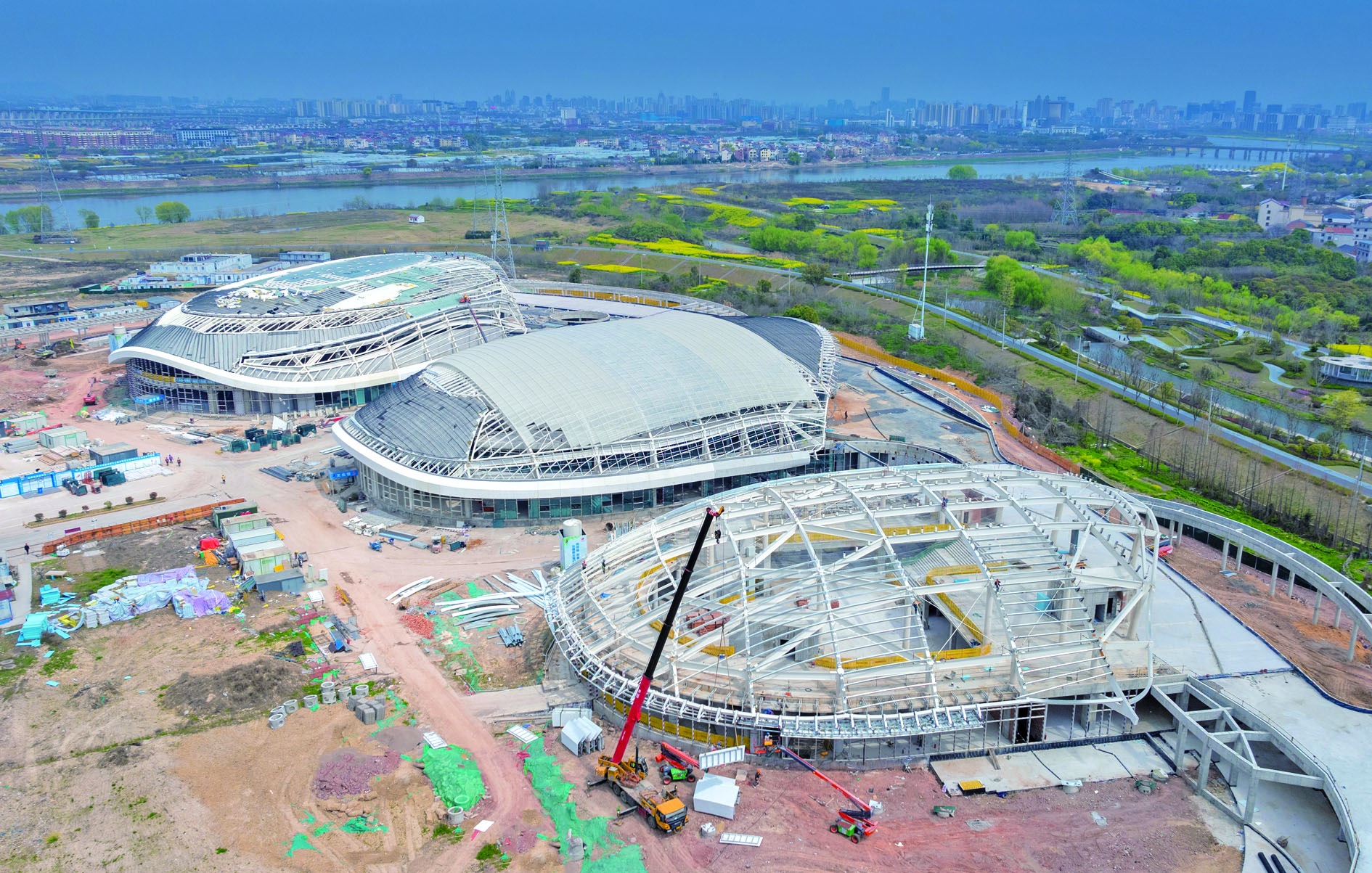 记者 钟路 陈业 实习生 郎婧 文/摄 昨日,在婺城区全民共享活动中心工程项目现场,工人正在进行室内装修与室外景观路基铺装,全力推进项目建设。 该项目位于桐溪街以东、金华江以南,总建筑面积5.46万平方米,主要建设内容包括婺城区图书馆、文化馆、非物质文化遗产馆及配套附属工程。目前,“三馆”钢结构已封顶,项目累计完成产值69.18%,预计年底全面建成。