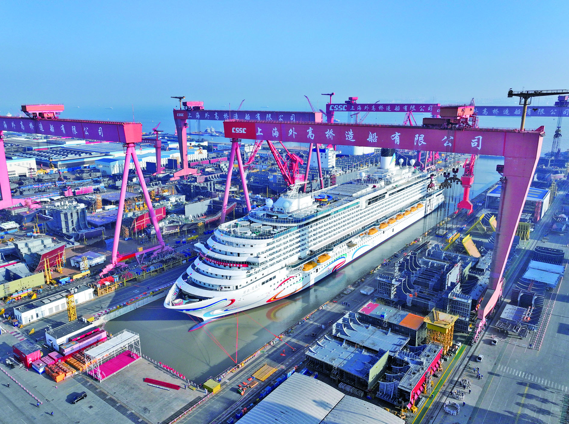 这是3月14日拍摄的第二艘国产大型邮轮“爱达·花城号”(无人机照片)。 我国第二艘国产大型邮轮“爱达·花城号”计划于3月20日在上海出坞。根据计划,“爱达·花城号”邮轮将于今年5月底出海试航,预计年底前正式交付。“爱达·花城号”邮轮总吨位达到14.19万吨。与首艘国产大型邮轮“爱达·魔都号”相比,“爱达·花城号”邮轮在设计和建造上进行了诸多改进。 新华社发