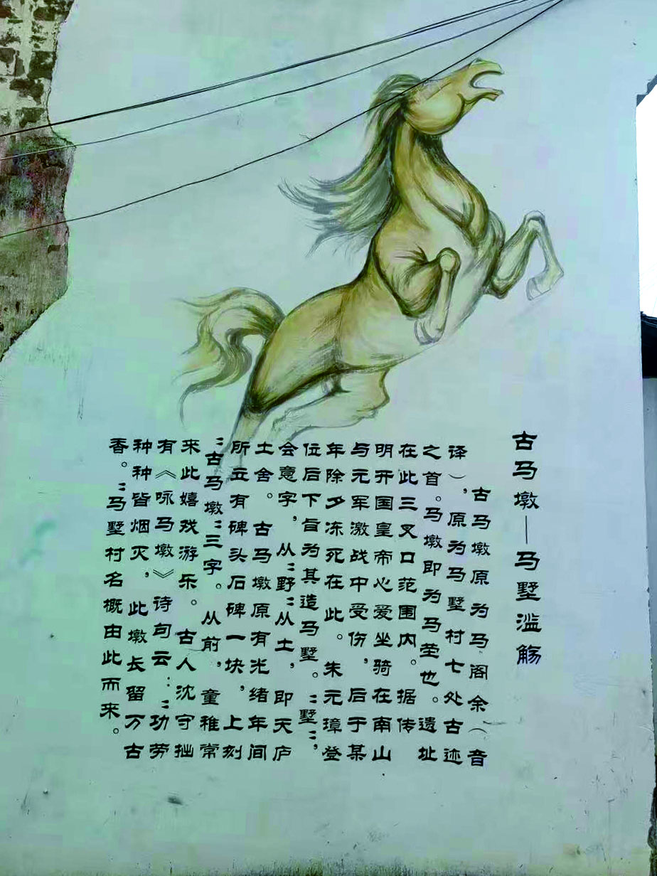 除了古马墩,马墅村里还有古马墩巷、咏马巷、骏马巷等与马有关的街巷。村庄入口处,还有一匹腾空前蹄似欲奔驰的骏马雕像。这不禁令人感到好奇:村子和马到底有什么关系?
