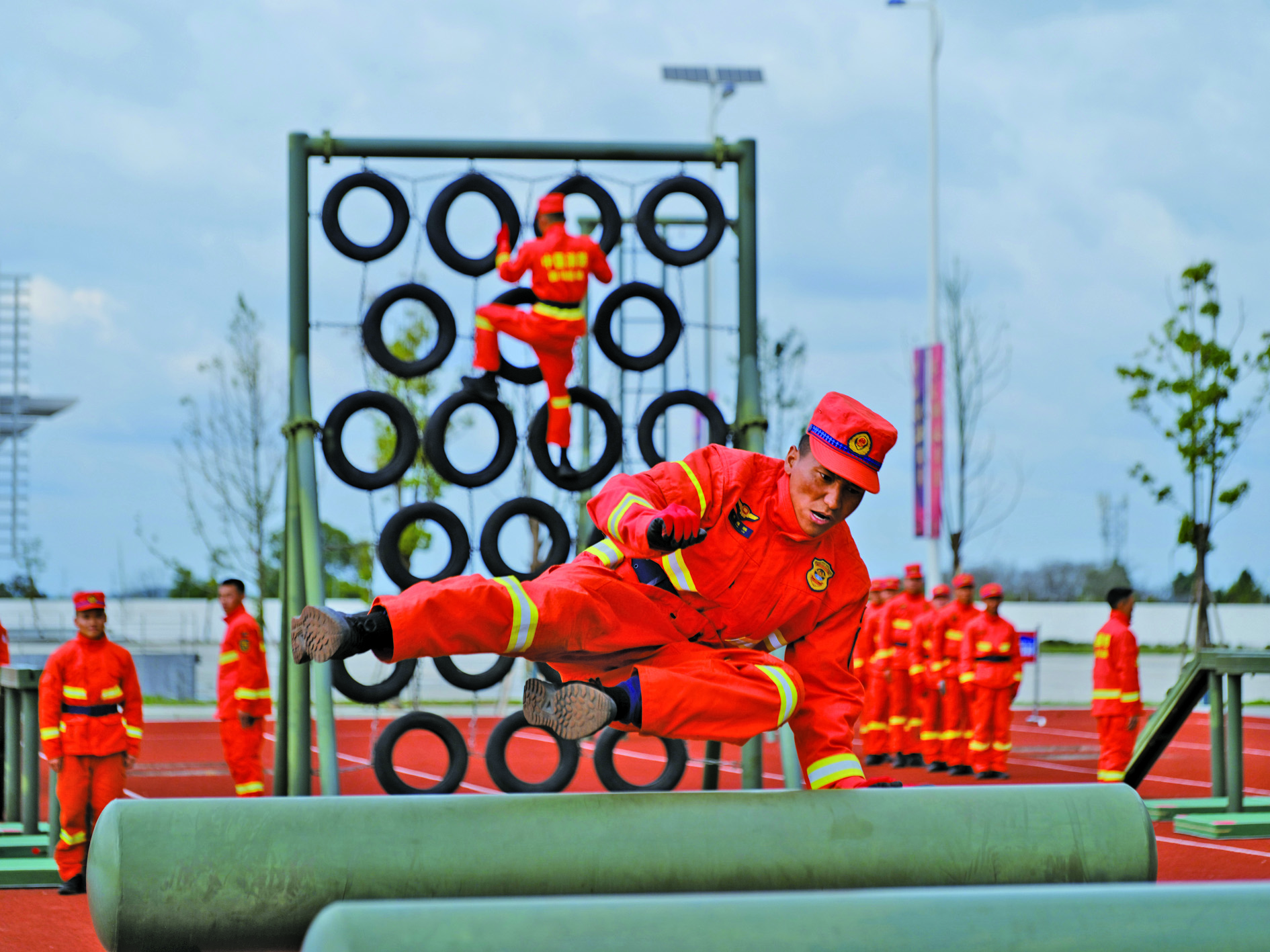 3月17日,新入职消防员在开展200米灭火障碍训练。 3月17日至18日,四川消防救援机动总队在位于成都的国家西南区域应急救援中心举行新消防员入职训练结业暨家属开放日活动,262名新消防员在亲人和战友见证下即将奔赴四川、重庆、西藏地区基层一线,应对各类自然灾害。据悉,这262名新消防员在成都完成为期6个月的42项专业训练,涵盖灭火、地震救援、水域救援等内容。 新华社发
