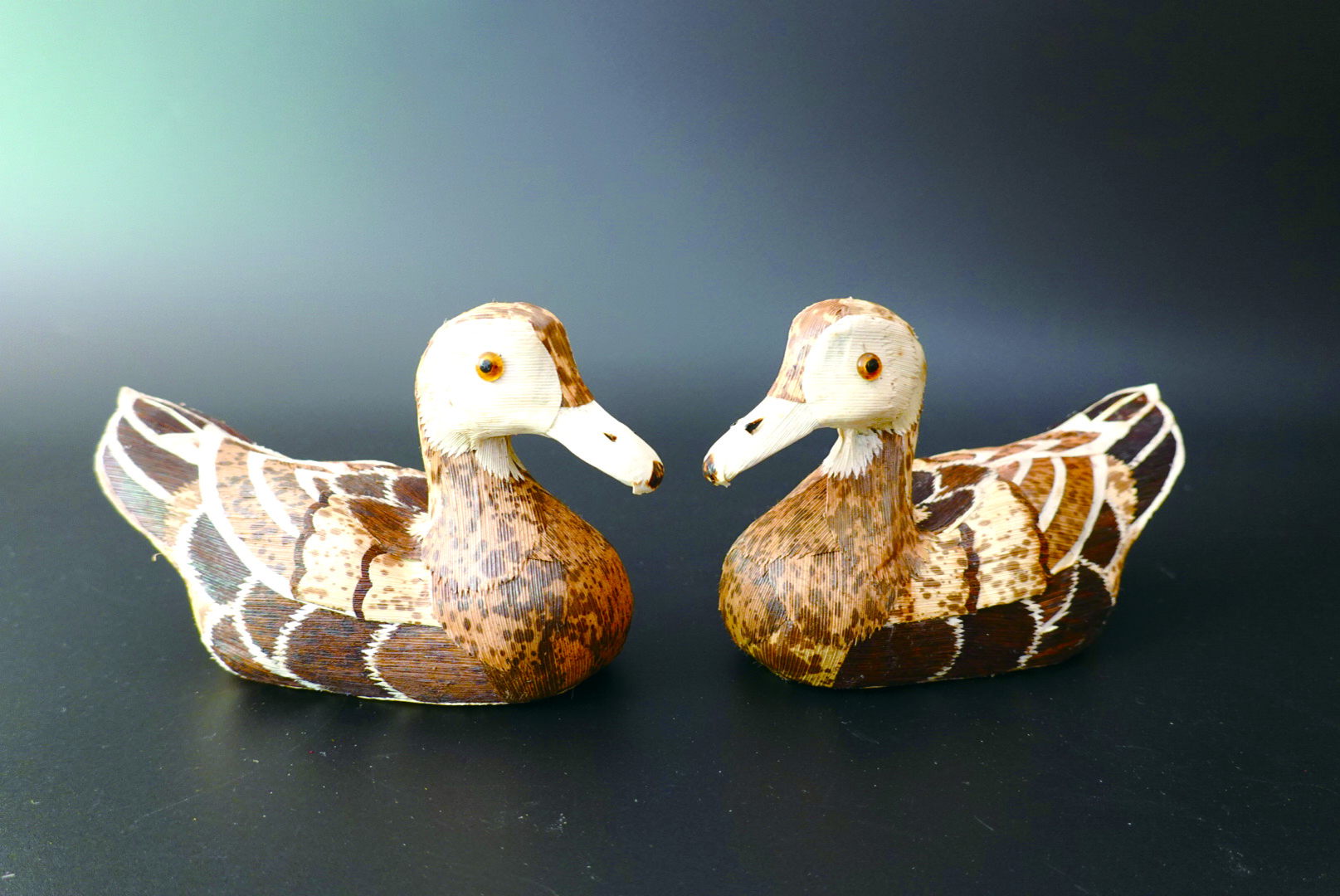 “这个部位的笋壳无论硬度还是韧性都是最佳,纹理精美,收取时也不影响竹子生长。”陈熠寒介绍,由于笋壳的纹理与自然界小动物的羽毛纹理相似,所以用笋壳制作的制品大多是禽类,比如猫头鹰、鸭子、鸳鸯、貉等。制作时,匠人会根据笋壳的奇特纹理,依壳拟形,就势修剪,极大地展现出笋壳的自然本色。