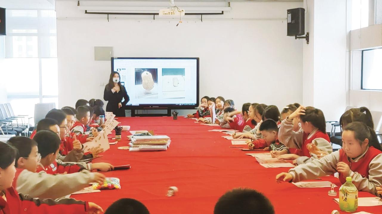 近日,市美术馆举办了第26期书法美育课堂,为市十八中初一的学生开展甲骨文研学活动。通过参观书法展览,让学生了解汉字起源和演变过程,将甲骨文引入传统文化教育中,极大地丰富了学生团体校外延展的研学教育实践活动,让美术馆教育职能得到充分发挥。 (靳婧 摄)
