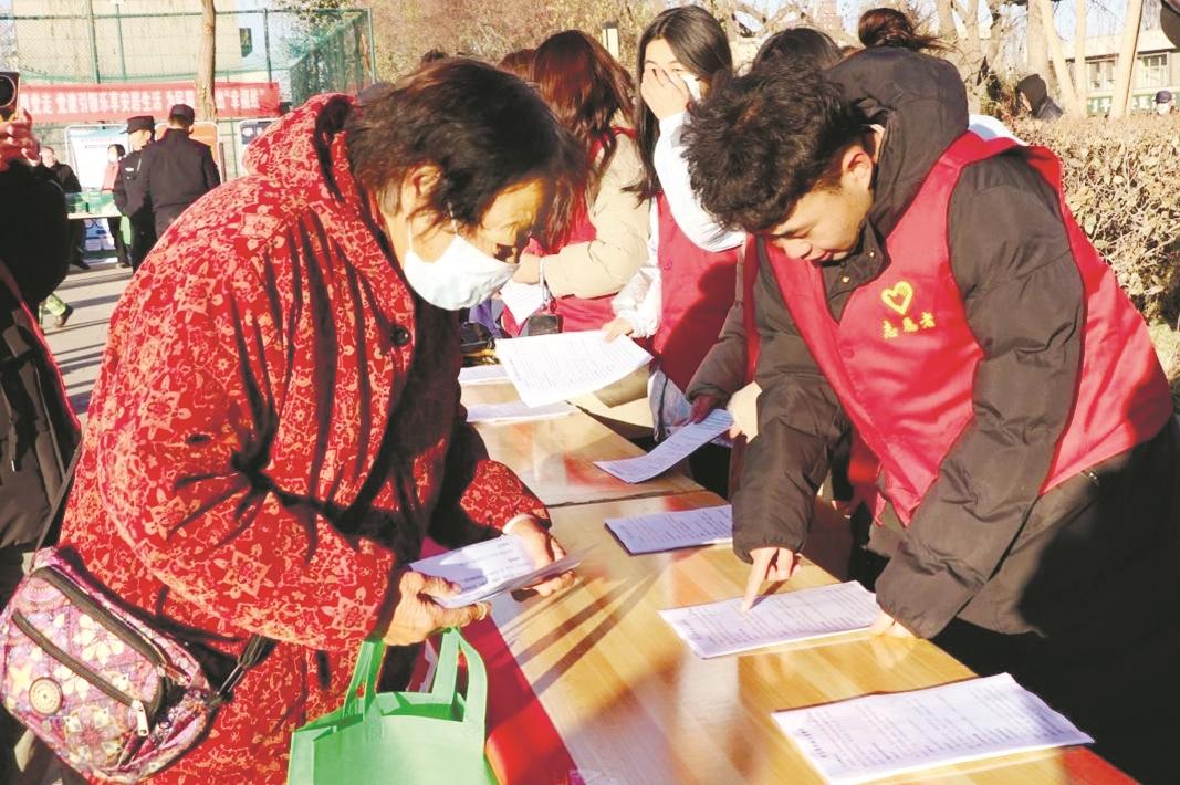 新华西街道坚持党建引领,以高质量打造一刻钟社区生活圈为目标,以发挥“循爱新华西”志愿服务品牌效应为抓手,不断激发便民生活新动能,让居民感受到更多“家门口”的幸福。图为工作人员向市民介绍如何通过“循爱新华西”小程序打卡报名参与志愿服务活动。 (毕晓敏 摄)
