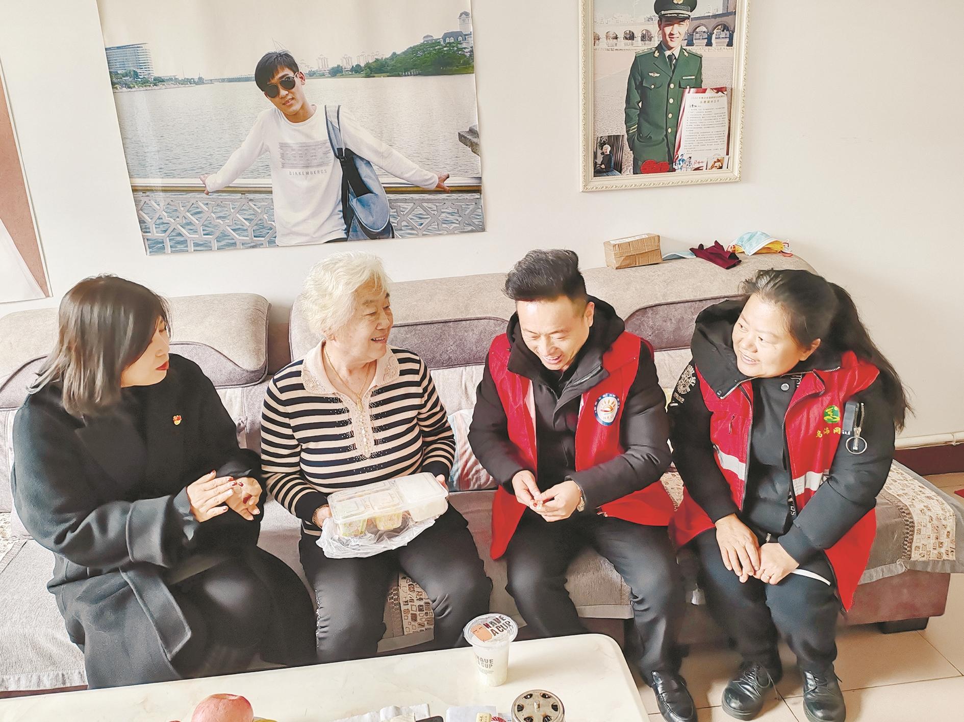 “我们从去年启动‘十助’服务,为老人助浴、助医、配餐等等,就是为了方便老人的生活。现在越来越多的人开始跟我们联系。” 海勃湾区夕阳红爱老服务中心负责人柴云团说。